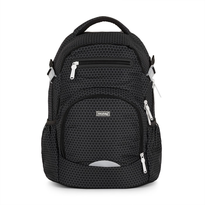 Školní batoh z řady OXY Ombre je ideální pro školáky od 3. třídy. Anatomicky tvarovaný zádový panel, polstrované ramenní popruhy a nastavitelný hrudní popruh zajistí záda jako v bavlnce každému školákovi. Pevné dno zabraňuje převrhnutí samostatně stojícího batohu. Batoh disponuje dvěma prostornými kapsami na všechny potřebné školní pomůcky. V bočních postranních kapsách na gumu je prostor pro láhev na pití, která je snadno dostupná pro doplnění pitného režimu každého školáka. Do přední kapsičky se snadno schová menší svačina. Nechybí řada reflexních prvků. Batoh je vhodný pro děti vysoké od 136 cm. Délka zádového panelu je 43 cm, objem činí 28 l, hmotnost batohu je 960 g a jeho nosnost je 8 kg.