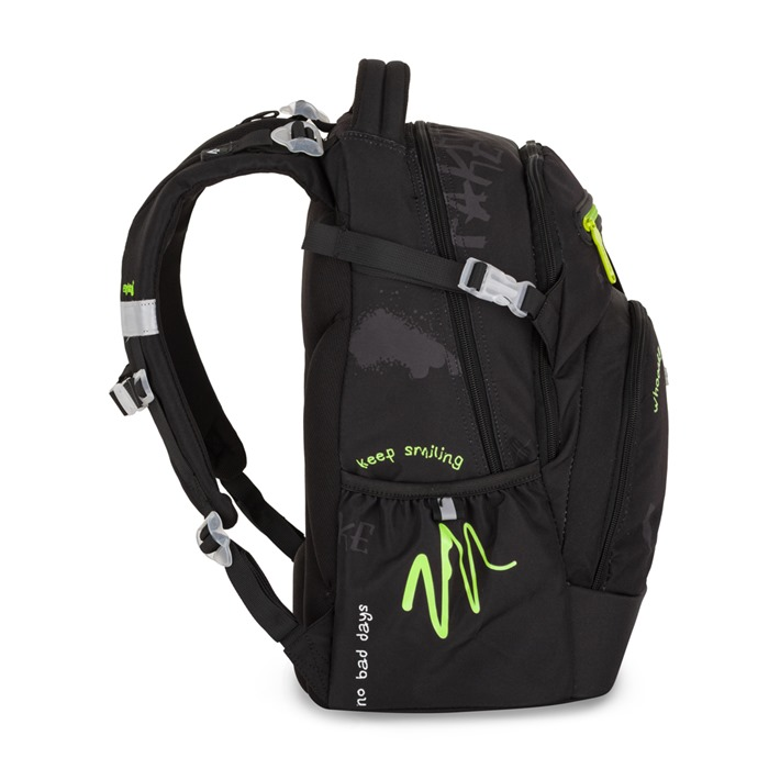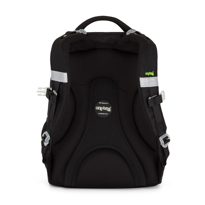 Školní batoh z řady OXY Ombre je ideální pro školáky od 3. třídy. Anatomicky tvarovaný zádový panel, polstrované ramenní popruhy a nastavitelný hrudní popruh zajistí záda jako v bavlnce každému školákovi. Pevné dno zabraňuje převrhnutí samostatně stojícího batohu. Batoh disponuje dvěma prostornými kapsami na všechny potřebné školní pomůcky. V bočních postranních kapsách na gumu je prostor pro láhev na pití, která je snadno dostupná pro doplnění pitného režimu každého školáka. Do přední kapsičky se snadno schová menší svačina. Nechybí řada reflexních prvků. Batoh je vhodný pro děti vysoké od 136 cm. Délka zádového panelu je 43 cm, objem činí 28 l, hmotnost batohu je 960 g a jeho nosnost je 8 kg.