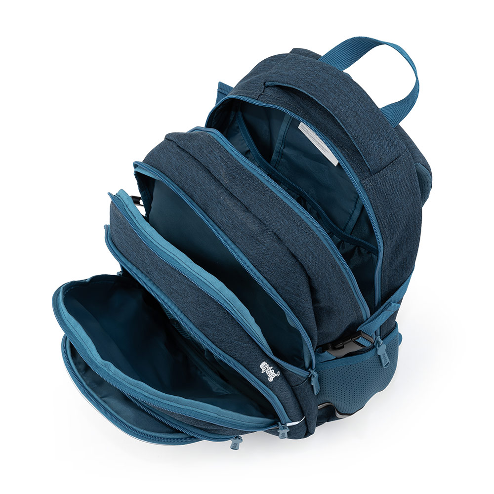 Oxy Scooler je tříkomorový batoh pro žáky i studenty s boční kapsou na láhev, organizérem, vnitřní malou kapsou a disponuje také kapsou na notebook do velikosti 15''. Nastavitelné ramenní popruhy i hrudní popruh společně s anatomicky tvarovaným prodyšným zádovým systémem přinášejí maximální pohodlí při nošení. Samozřejmě nechybí reflexní prvky. Rozměry: 45 x 30 x 16 cm. Objem: 23 l. Nosnost: 8 kg. Nízká hmotnost: ? 910 g.