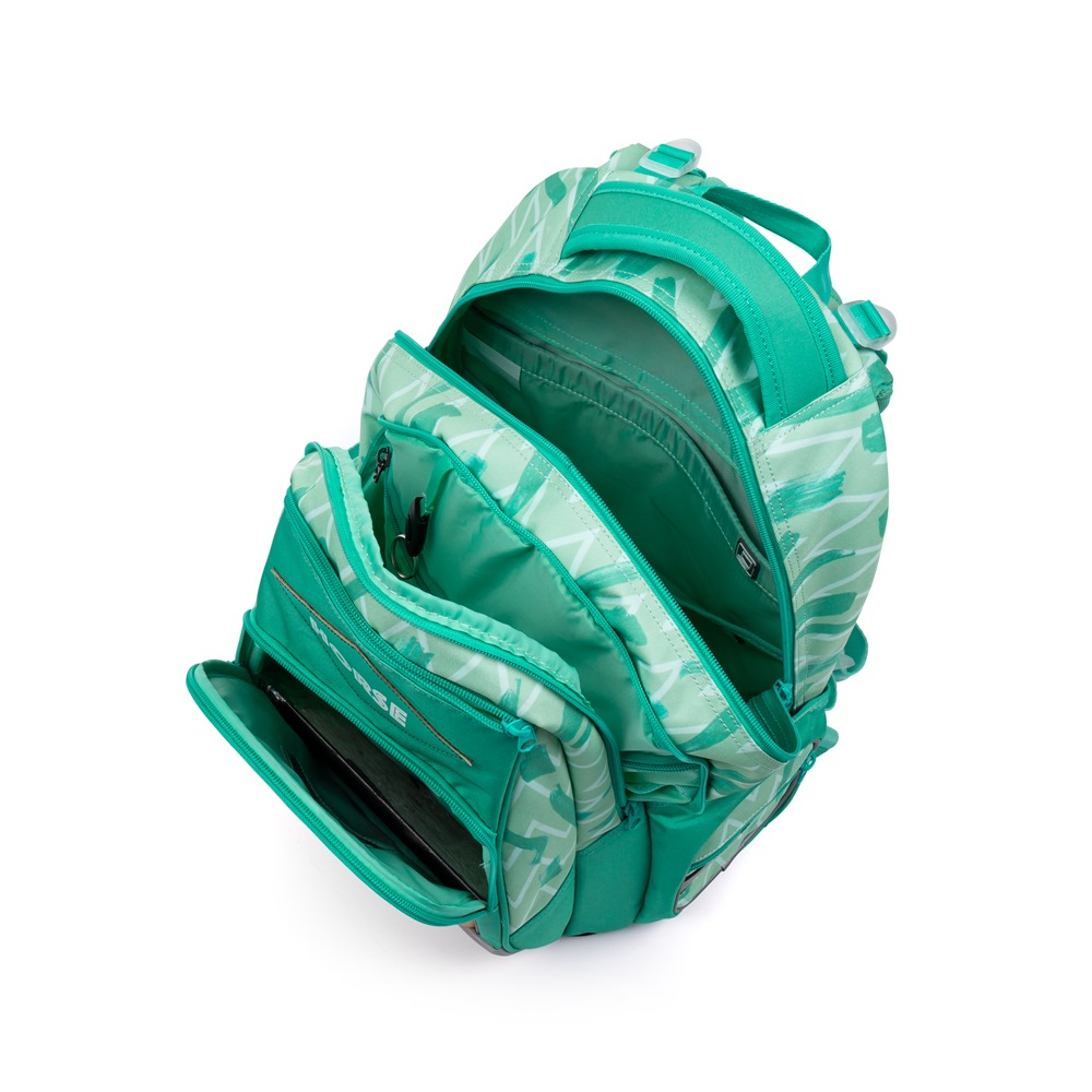 Jeho vnitřní členění si zamilujete: 2 oddělené komory, praktická kapsa na notebook velikosti 12“, menší kapsa na tablet, nebo čtečku do velikosti 10“ a jako bonus menší kapsa s organizérem na různé školní drobnosti.