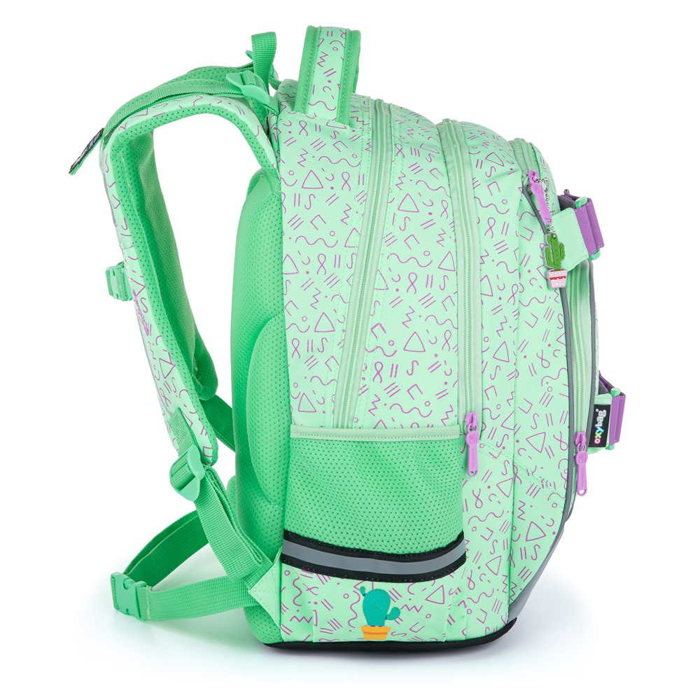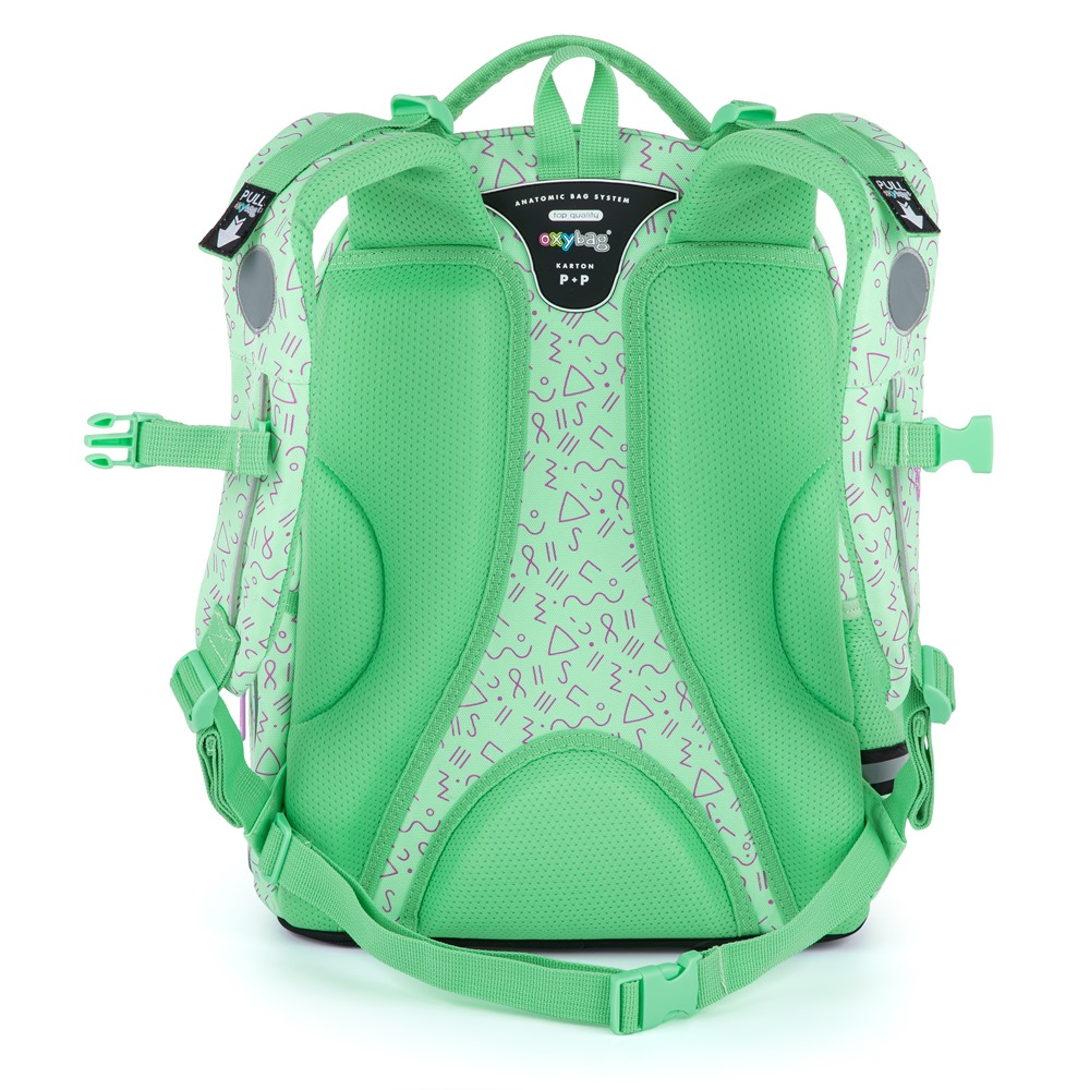 Školní batoh z řady OXY STYLE Mini na sebe jednoduše strhne pozornost. Určitě oceníte jeho promyšlený vnější design: sympatický tvar, anatomicky tvarovaná a prodyšná záda, přední kapsu na zip i extra boční kapsy. Otevřená boční kapsa slouží na láhev, malá kapsička na zip z druhé strany ukryje telefon či klíče. Hravé rozmístění kontrastních detailů vás bude bavit. Ramenní popruhy a popruh na hrudi si můžete libovolně nastavit. Vychytávkou tohoto modelu je bederní popruh, který ulehčí nošení batohu a pevné dno, které podporuje celkovou stabilitu batohu. Jeho vnitřní členění si zamilujete: 2 oddělené komory, praktická kapsa na notebook velikosti 12“, menší kapsa na tablet, nebo čtečku do velikosti 10“ a jako bonus menší kapsa s organizérem na různé školní drobnosti. Lehký jako pírko, přesto prostorný, pojme až 28 litrů věcí, bez nichž se zkrátka žádný žák ve škole neobejde. Batoh je ideální na první stupeň pro děti vysoké od 128 cm. Objem: 28 l. Nosnost: 8 kg.