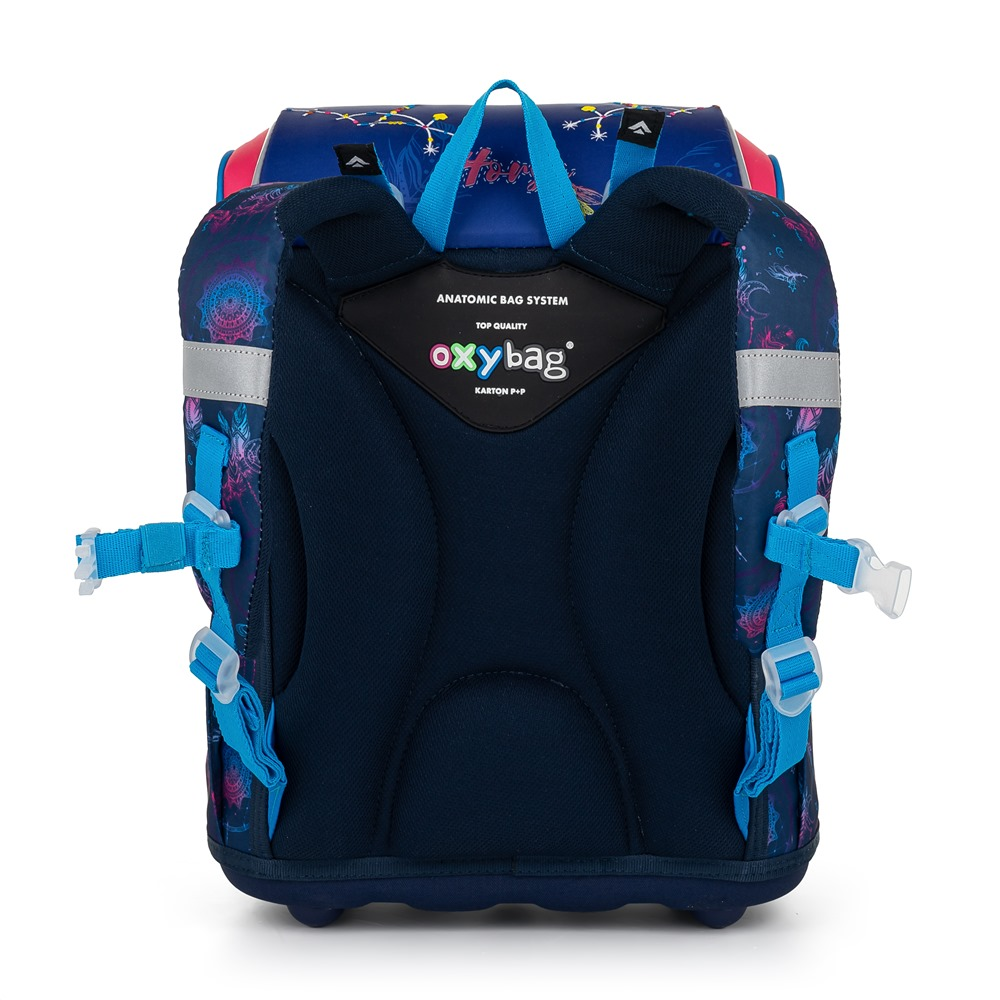 Školní aktovka z řady Premium je anatomicky tvarovaná a zajišťuje tak správné usazení na zádech. Vyztužená záda a vnitřní výztuha udržují stálý tvar batohu. Polstrování je z příjemného prodyšného materiálu, široké měkčené popruhy jsou navrženy tak, aby dokonale přilnuly a rovnoměrně zatížily ramena dítěte. Aktovka se skládá z jedné prostorné komory, kam se pohodlně vejdou všechny školní pomůcky pro děti v 1. a ve 2. třídě. Dno batohu je z pevného materiálu, chrání tím obsah před převržením a vysypáním. Zapínání je na bezpečnostní přezku. Přední kapsička je určena na svačinu, nechybí řada reflexních prvků, díky kterým je aktovka viditelnější. Objem: 28 l. Nosnost: 8kg.