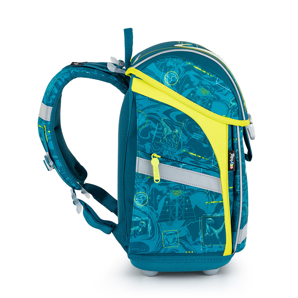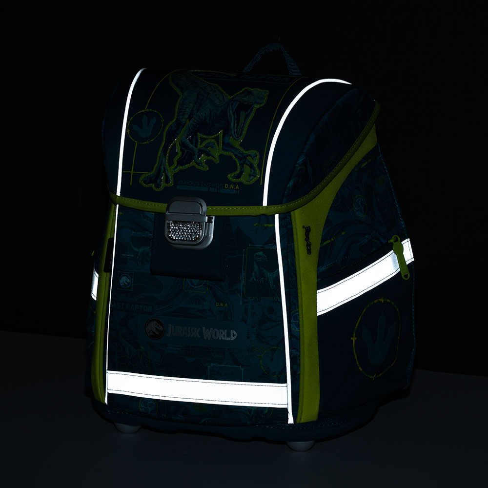 Školní batoh řady Premium Light s motivem Jurassic World nabízí kvalitu, prostor na školní potřeby i odlehčenou konstrukci pro pohodlnější nošení. Díky odlehčenému materiálu váží batoh pouhých 900 g. Polstrování je z příjemného prodyšného materiálu, široké měkčené popruhy jsou navrženy tak, aby dokonale přilnuly a rovnoměrně zatížily ramena dítěte. Pro pohodlnější nošení je batoh dále vybaven přitažnými a hrudními popruhy. Batohy ocení především ti nejmladší školáci s výškou od 121 cm. Nechybí ani praktické reflexní prvky, vnitřní rozřaďovač i velké množství kapes.