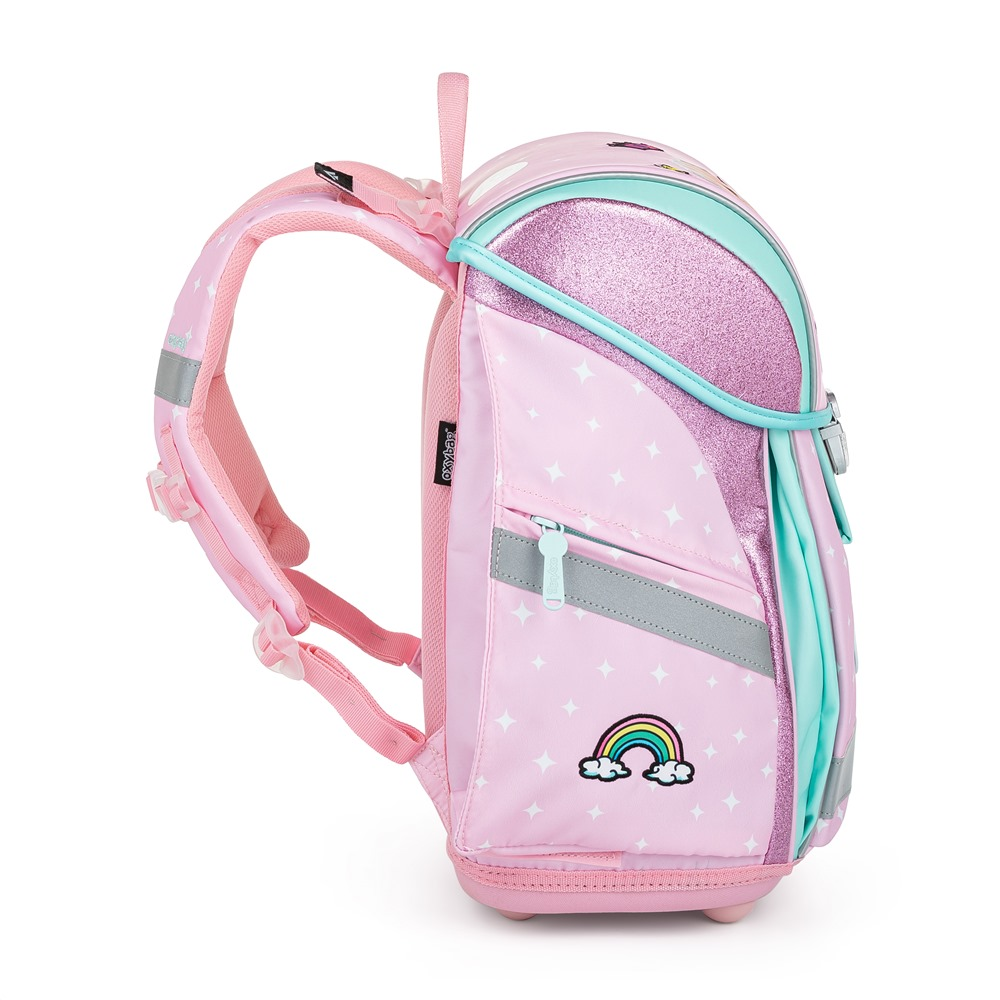 Školní batoh řady Premium Light nabízí kvalitu, prostor na školní potřeby i odlehčenou konstrukci pro pohodlnější nošení. Díky odlehčenému materiálu váží batoh pouhých 970 g. Polstrování je z příjemného prodyšného materiálu, široké měkčené popruhy jsou navrženy tak, aby dokonale přilnuly a rovnoměrně zatížily ramena dítěte. Pro pohodlnější nošení je batoh dále vybaven přitažnými a hrudními popruhy. Batohy ocení především ti nejmladší školáci s výškou od 121 cm. Nechybí ani praktické reflexní prvky, vnitřní rozřaďovač i velké množství kapes. Objem: 27 l. Nosnost 8kg.