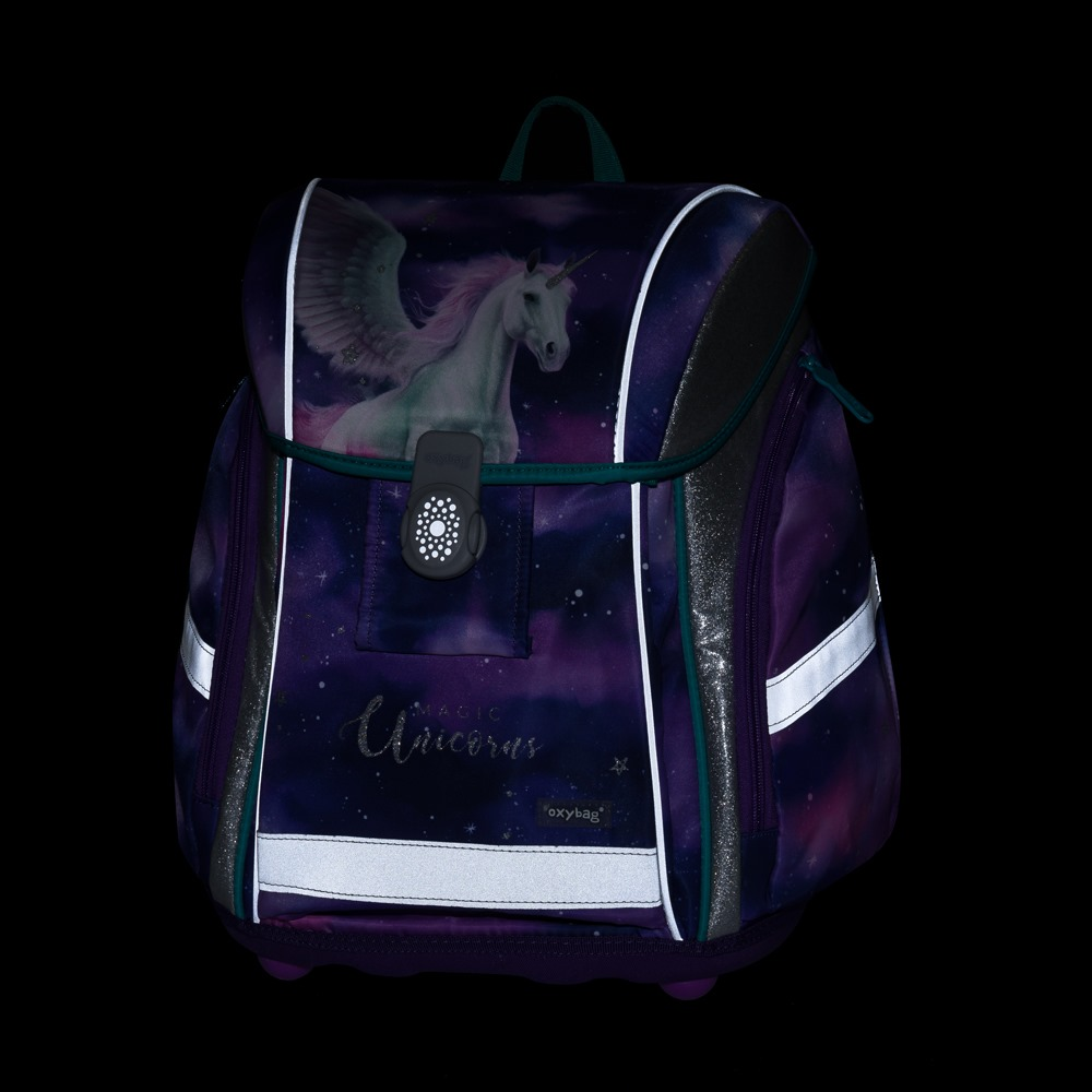 Školní batoh řady Premium Light nabízí kvalitu, prostor na školní potřeby i odlehčenou konstrukci pro pohodlnější nošení. Díky odlehčenému materiálu váží batoh pouhých 985 g. Polstrování je z příjemného prodyšného materiálu, široké měkčené popruhy jsou navrženy tak, aby dokonale přilnuly a rovnoměrně zatížily ramena dítěte. Pro pohodlnější nošení je batoh dále vybaven přitažnými a hrudními popruhy. Batoh je i navíc opatřen přidávnými háčky pro uchycení popruhů. Batohy ocení především ti nejmladší školáci s výškou od 121 cm. Nechybí ani praktické reflexní prvky, jednoduché magnetické zapínání, vnitřní rozřaďovač i velké množství kapes. Batoh Premium Light bude tak perfektním parťákem nejen do školy. Délka zádového panelu: 33 cm. Objem: 26 l. Nosnost: 8 kg.