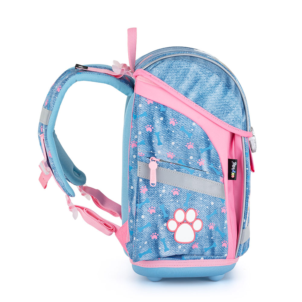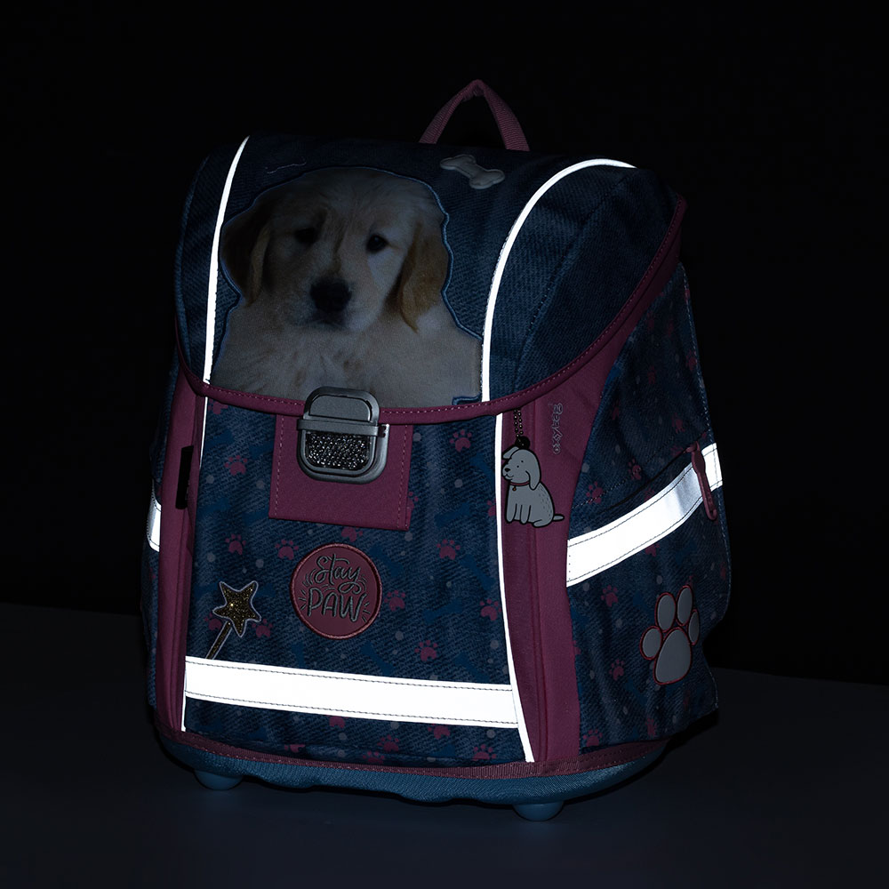 Školní batoh řady Premium Light s motivem psa nabízí kvalitu, prostor na školní potřeby i odlehčenou konstrukci pro pohodlnější nošení. Díky odlehčenému materiálu váží batoh pouhých 900 g. Polstrování je z příjemného prodyšného materiálu, široké měkčené popruhy jsou navrženy tak, aby dokonale přilnuly a rovnoměrně zatížily ramena dítěte. Pro pohodlnější nošení je batoh dále vybaven přítažnými a hrudními popruhy. Batohy ocení především ti nejmladší školáci s výškou od 121 cm. Nechybí ani praktické reflexní prvky, vnitřní rozřaďovač i velké množství kapes.