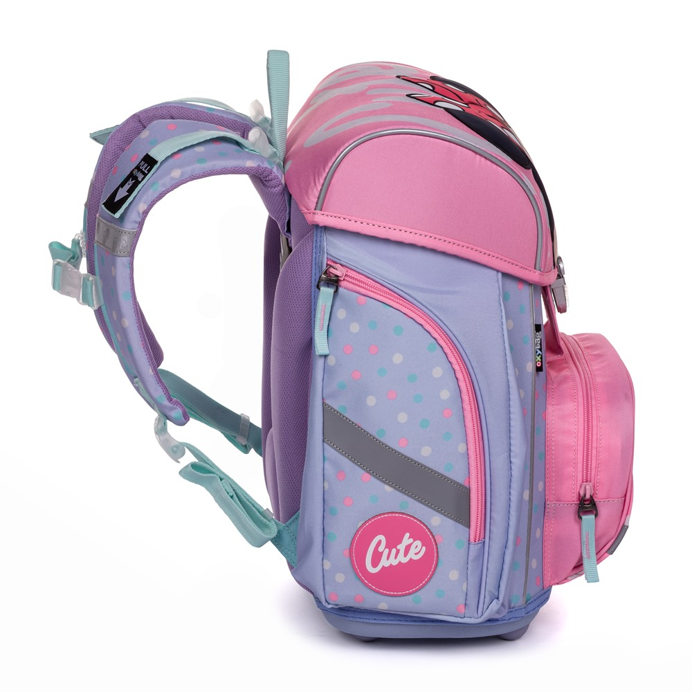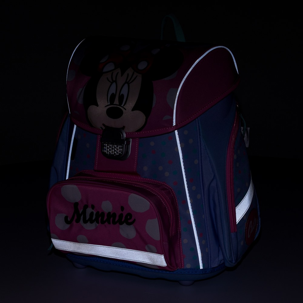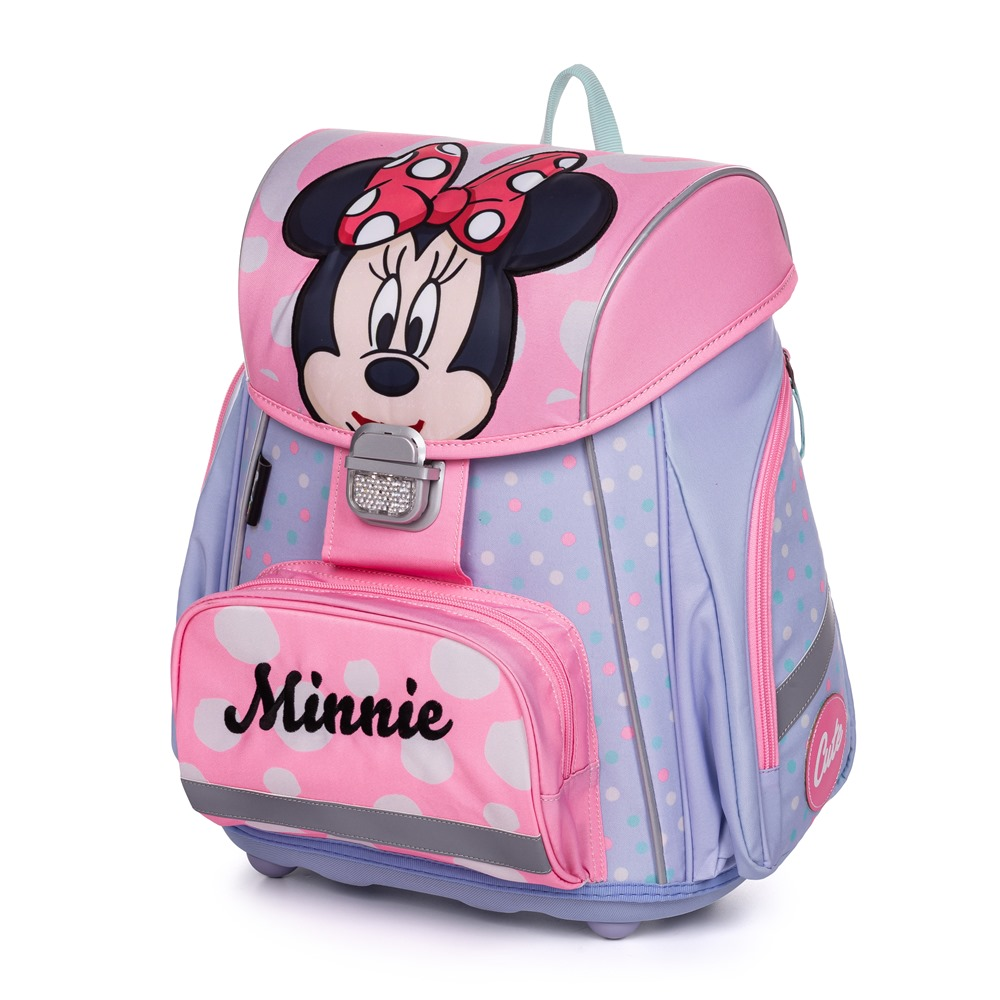 Školní aktovka z řady Premium s motivem Minnie je anatomicky tvarovaná a zajišťuje tak správné usazení na zádech. Vyztužená záda a vnitřní výztuha udržují stálý tvar batohu. Polstrování je z příjemného prodyšného materiálu, široké měkčené popruhy jsou navrženy tak, aby dokonale přilnuly a rovnoměrně zatížily ramena dítěte. Aktovka se skládá z jedné prostorné komory, kam se pohodlně vejdou všechny školní pomůcky pro děti v 1. a ve 2. třídě. Dno batohu je z pevného materiálu, chrání tím obsah před převržením a vysypáním. Zapínání je na bezpečnostní přezku. Přední kapsička je určena na svačinu, nechybí řada reflexních prvků, díky kterým je aktovka viditelnější.
