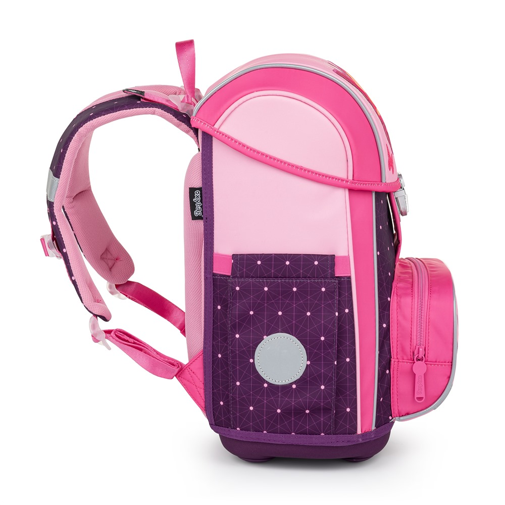 Školní aktovka z řady Premium je anatomicky tvarovaná a zajišťuje tak správné usazení na zádech. Vyztužená záda a vnitřní výztuha udržují stálý tvar batohu. Polstrování je z příjemného prodyšného materiálu, široké měkčené popruhy jsou navrženy tak, aby dokonale přilnuly a rovnoměrně zatížily ramena dítěte. Aktovka se skládá z jedné prostorné komory, kam se pohodlně vejdou všechny školní pomůcky pro děti v 1. a ve 2. třídě. Dno batohu je z pevného materiálu, chrání tím obsah před převržením a vysypáním. Zapínání je na bezpečnostní přezku. Přední kapsička je určena na svačinu, nechybí řada reflexních prvků, díky kterým je aktovka viditelnější. Objem: 28 l. Nosnost: 8kg.