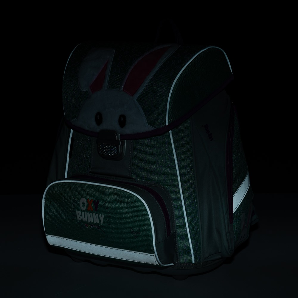Školní aktovka z řady Premium s motivem králíčka je anatomicky tvarovaná a zajišťuje tak správné usazení na zádech. Vyztužená záda a vnitřní výztuha udržují stálý tvar batohu. Polstrování je z příjemného prodyšného materiálu, široké měkčené popruhy jsou navrženy tak, aby dokonale přilnuly a rovnoměrně zatížily ramena dítěte. Aktovka se skládá z jedné prostorné komory, kam se pohodlně vejdou všechny školní pomůcky pro děti v 1. a ve 2. třídě. Dno batohu je z pevného materiálu, chrání tím obsah před převržením a vysypáním. Zapínání je na bezpečnostní přezku. Přední kapsička je určena na svačinu, nechybí řada reflexních prvků, díky kterým je aktovka viditelnější.