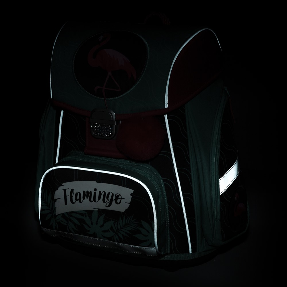 Školní aktovka z řady Premium s motivem plameňáka je anatomicky tvarovaná a zajišťuje tak správné usazení na zádech. Vyztužená záda a vnitřní výztuha udržují stálý tvar batohu. Polstrování je z příjemného prodyšného materiálu, široké měkčené popruhy jsou navrženy tak, aby dokonale přilnuly a rovnoměrně zatížily ramena dítěte. Aktovka se skládá z jedné prostorné komory, kam se pohodlně vejdou všechny školní pomůcky pro děti v 1. a ve 2. třídě. Dno batohu je z pevného materiálu, chrání tím obsah před převržením a vysypáním. Zapínání je na bezpečnostní přezku. Přední kapsička je určena na svačinu, nechybí řada reflexních prvků, díky kterým je aktovka viditelnější.