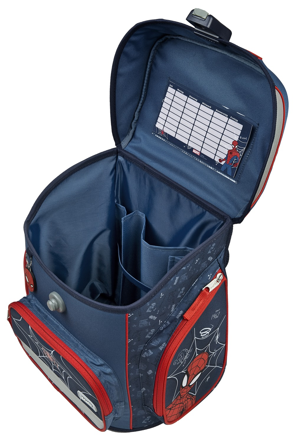Školní aktovka z řady Premium s motivem Spidermana je anatomicky tvarovaná a zajišťuje tak správné usazení na zádech. Vyztužená záda a vnitřní výztuha udržují stálý tvar batohu. Polstrování je z příjemného prodyšného materiálu, široké měkčené popruhy jsou navrženy tak, aby dokonale přilnuly a rovnoměrně zatížily ramena dítěte. Aktovka se skládá z jedné prostorné komory, kam se pohodlně vejdou všechny školní pomůcky pro děti v 1. a ve 2. třídě. Dno batohu je z pevného materiálu, chrání tím obsah před převržením a vysypáním. Zapínání je na bezpečnostní přezku. Přední kapsička je určena na svačinu, nechybí řada reflexních prvků, díky kterým je aktovka viditelnější.