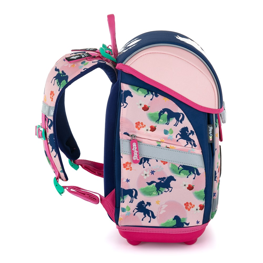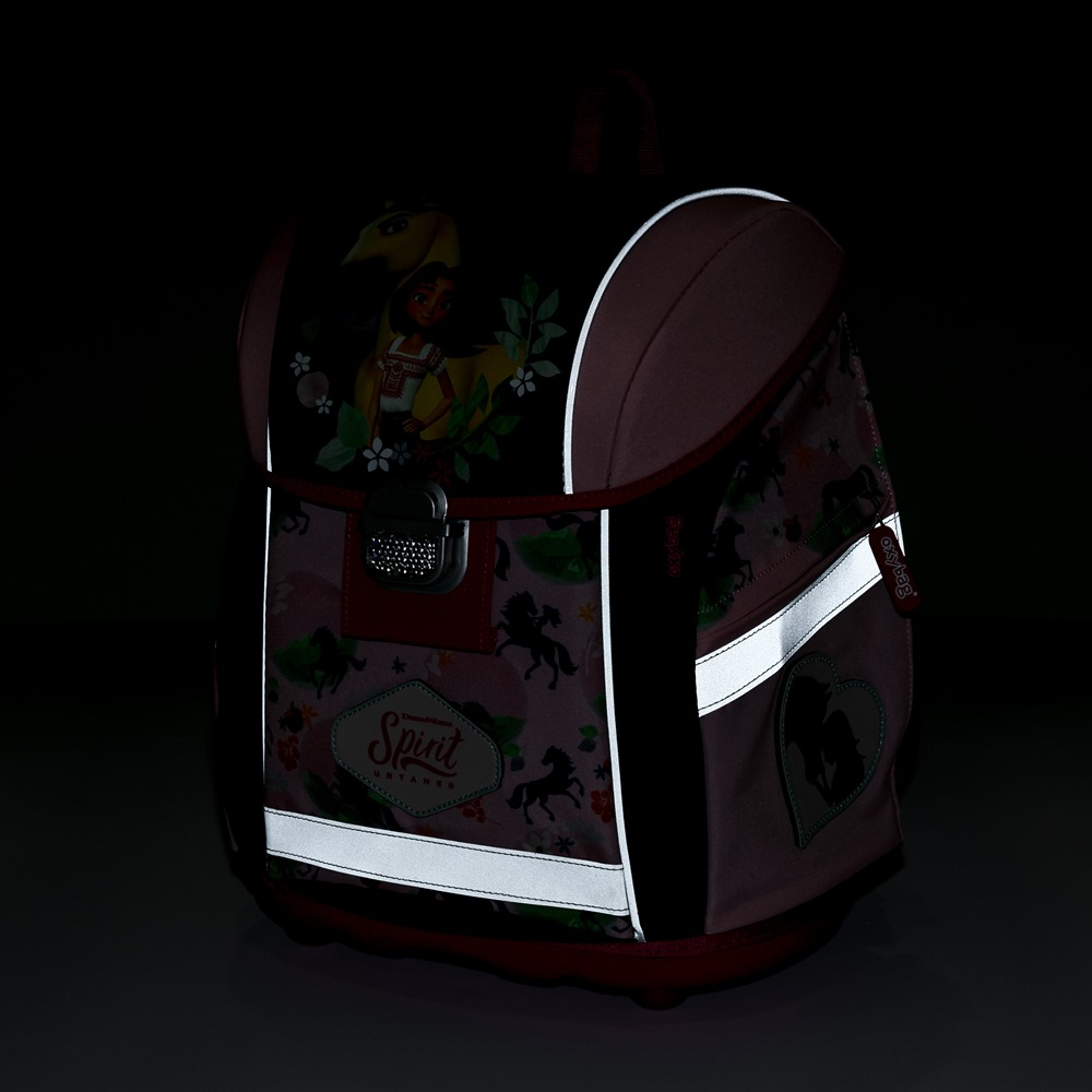 Školní batoh řady Premium Light s motivem Spirit nabízí kvalitu, prostor na školní potřeby i odlehčenou konstrukci pro pohodlnější nošení. Díky odlehčenému materiálu váží batoh pouhých 900 g. Polstrování je z příjemného prodyšného materiálu, široké měkčené popruhy jsou navrženy tak, aby dokonale přilnuly a rovnoměrně zatížily ramena dítěte. Pro pohodlnější nošení je batoh dále vybaven přitažnými a hrudními popruhy. Batohy ocení především ti nejmladší školáci s výškou od 121 cm. Nechybí ani praktické reflexní prvky, vnitřní rozřaďovač i velké množství kapes.