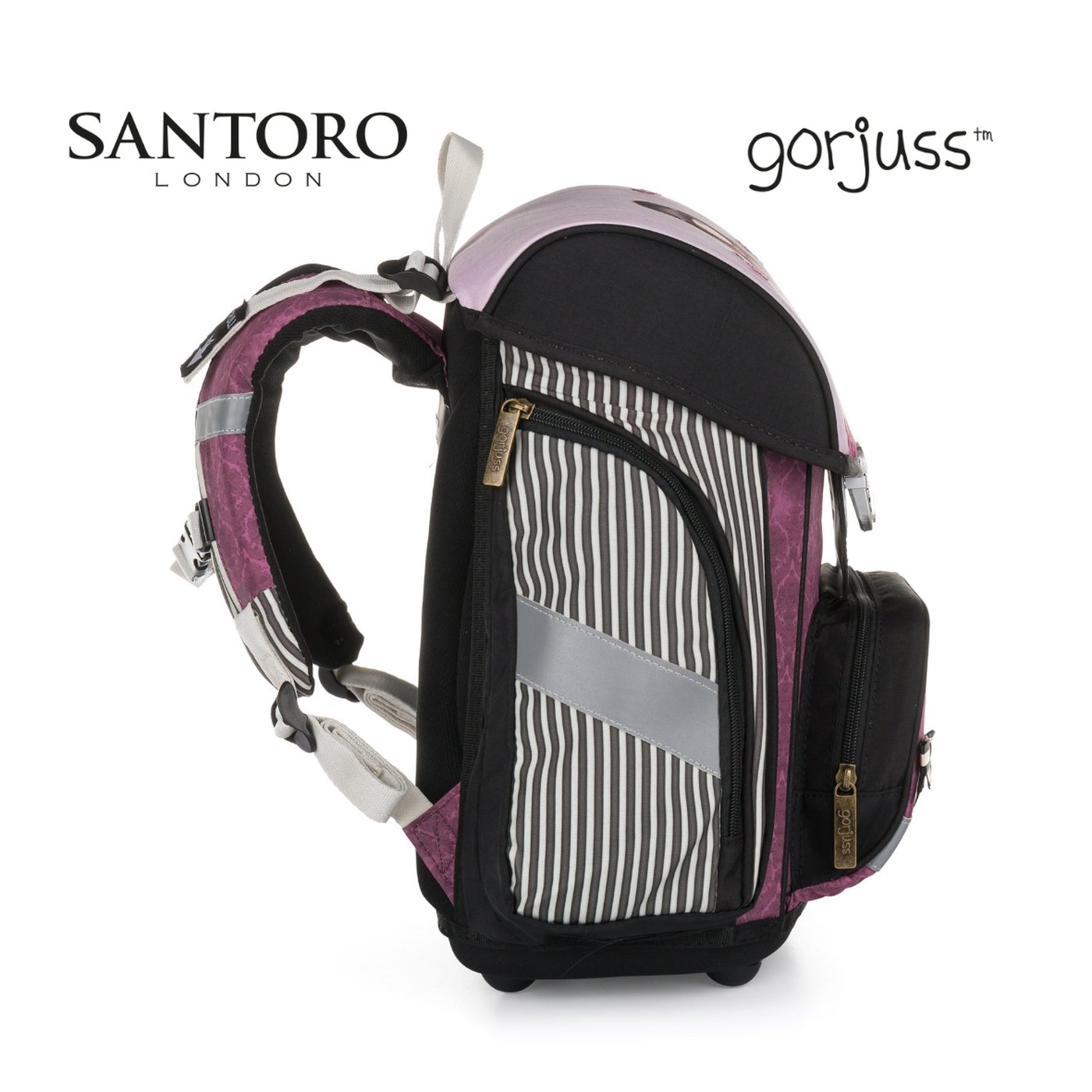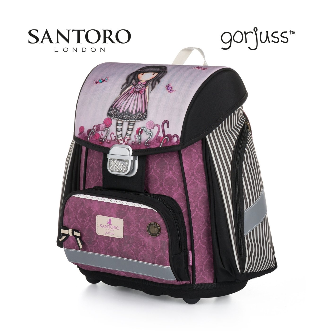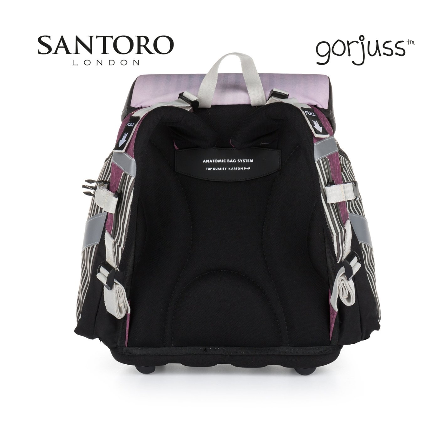 Školní aktovka z řady Premium s motivem Santoro Sugar And Spice je anatomicky tvarovaná a zajišťuje tak správné usazení na zádech. Vyztužená záda a vnitřní výztuha udržují stálý tvar batohu. Polstrování je z příjemného prodyšného materiálu, široké měkčené popruhy jsou navrženy tak, aby dokonale přilnuly a rovnoměrně zatížily ramena dítěte. Aktovka se skládá z jedné prostorné komory, kam se pohodlně vejdou všechny školní pomůcky pro děti v 1. a ve 2. třídě. Dno batohu je z pevného materiálu, chrání tím obsah před převržením a vysypáním. Zapínání je na bezpečnostní přezku. Přední kapsička je určena na svačinu, nechybí řada reflexních prvků, díky kterým je aktovka viditelnější.