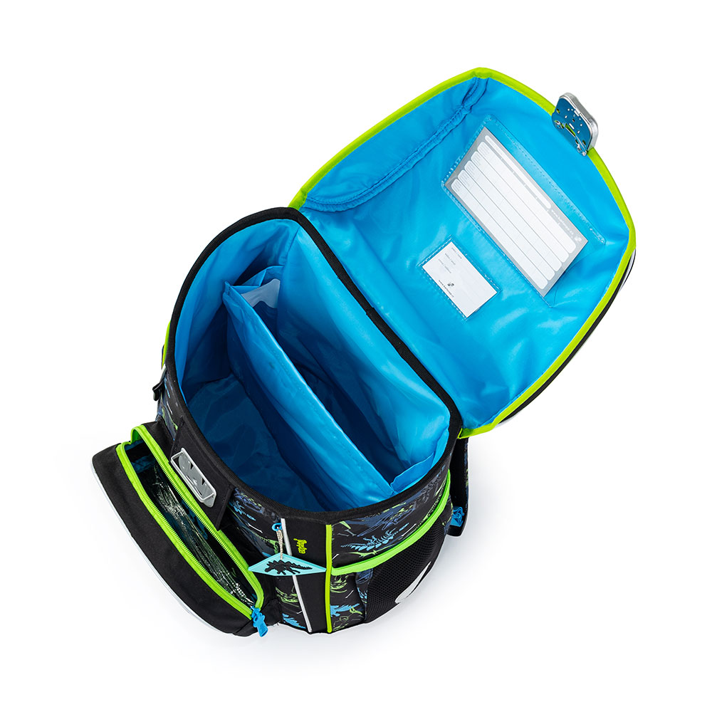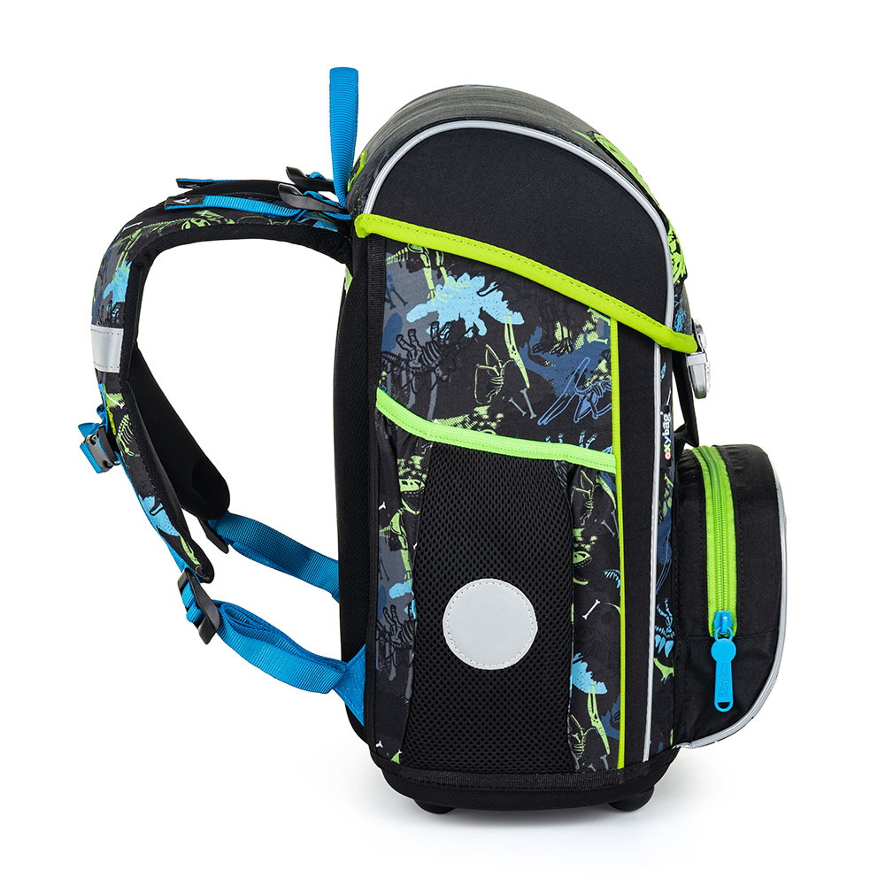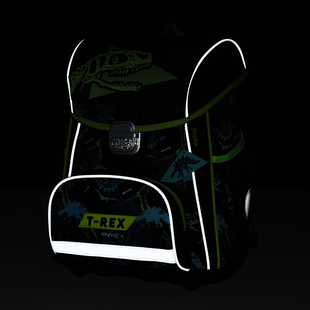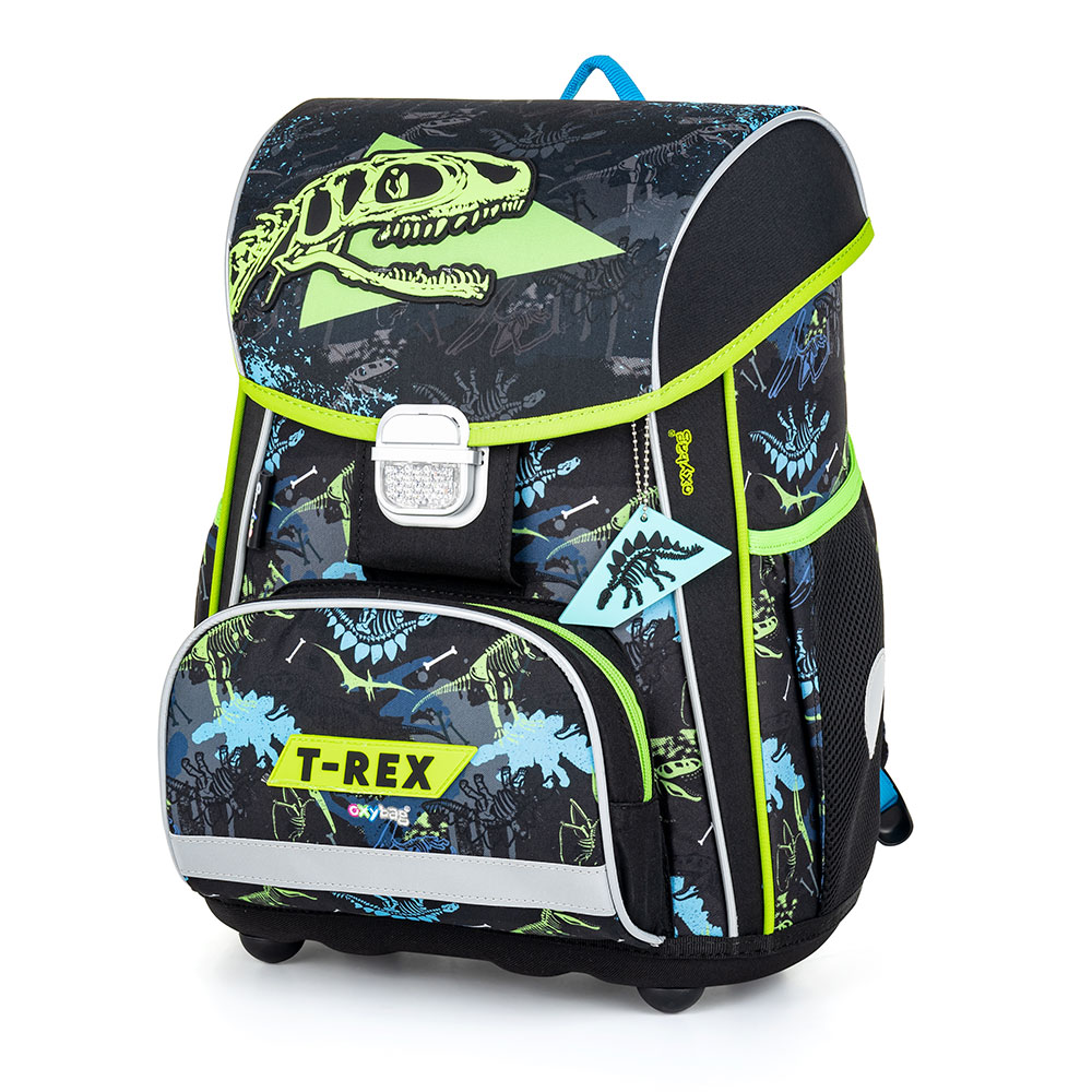 Školní aktovka z řady Premium s motivem T-rex je anatomicky tvarovaná a zajišťuje tak správné usazení na zádech. Vyztužená záda a vnitřní výztuha udržují stálý tvar batohu. Polstrování je z příjemného prodyšného materiálu, široké měkčené popruhy jsou navrženy tak, aby dokonale přilnuly a rovnoměrně zatížily ramena dítěte. Aktovka se skládá z jedné prostorné komory, kam se pohodlně vejdou všechny školní pomůcky pro děti v 1. a ve 2. třídě. Dno batohu je z pevného materiálu, chrání tím obsah před převržením a vysypáním. Zapínání je na bezpečnostní přezku. Přední kapsička je určena na svačinu, nechybí řada reflexních prvků, díky kterým je aktovka viditelnější.