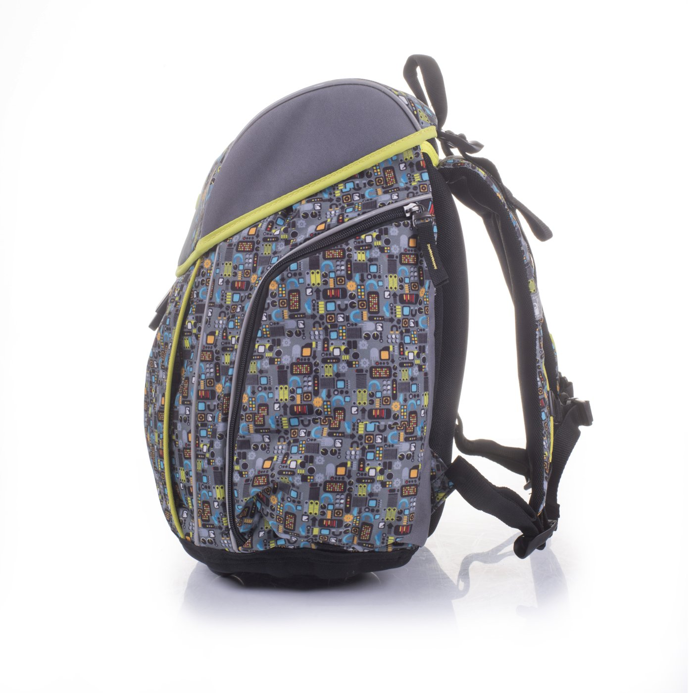 Školní batoh Smarty pro prvňáčky s odlehčenou konstrukcí. Hlavní předností tohoto batohu je nízká hmotnost – 850 g. Speciální moderní vychytávkou je jednoduché magnetické zapínání Fidlock, které usnadňuje manipulaci při otevírání a uzavírání batohu. Vnitřní prostor rozděluje praktická přepážka, stabilitu celého batohu zajišťuje zpevněné dno. Záda batohu jsou polstrovaná a anatomicky tvarovaná, vrchní přítažné popruhy a hrudní popruhy zajišťují správné usazení batohu na zádech dítěte. Pro větší bezpečnost a viditelnost má batoh řadu reflexních prvků, samozřejmostí je certifikace státní zkušebnou.