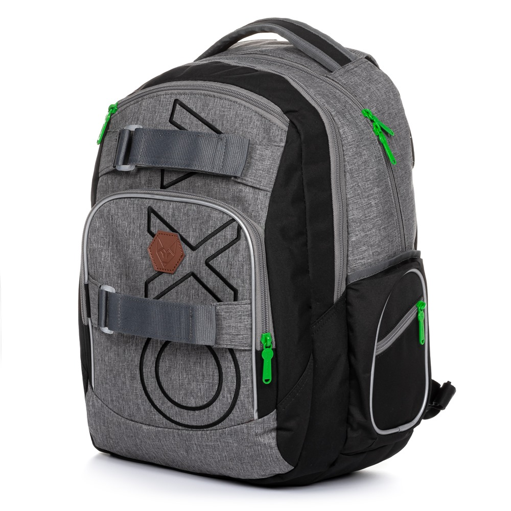 Školní batoh: z řady OXY STYLE na sebe jednoduše strhne pozornost. Je stylový, cool, prostě pecka. Hvězda ve své třídě a ideální parťák nejen do školy. Určitě oceníte jeho promyšlený vnější design: sympatický tvar, anatomicky tvarovaná a prodyšná záda, přední kapsu na zip i extra boční kapsy. Otevřená boční kapsa slouží na láhev, malá kapsička na zip z druhé strany ukryje telefon či klíče. Hravé rozmístění kontrastních detailů vás bude bavit. Ramenní popruhy a popruh na hrudi si můžete libovolně nastavit. Jeho vnitřní členění si zamilujete: 2 oddělené komory, praktická kapsa na notebook velikosti 15“, menší kapsa na tablet, nebo čtečku do velikosti 10“ a jako bonus menší kapsa s organizérem na různé školní drobnosti. Nepořádku, sbohem. Lehký jako pírko, prázdný neváží ani celé kilo. Přesto prostorný, pojme až 28 litrů věcí, bez nichž se zkrátka žádný teenager ve škole neobejde.