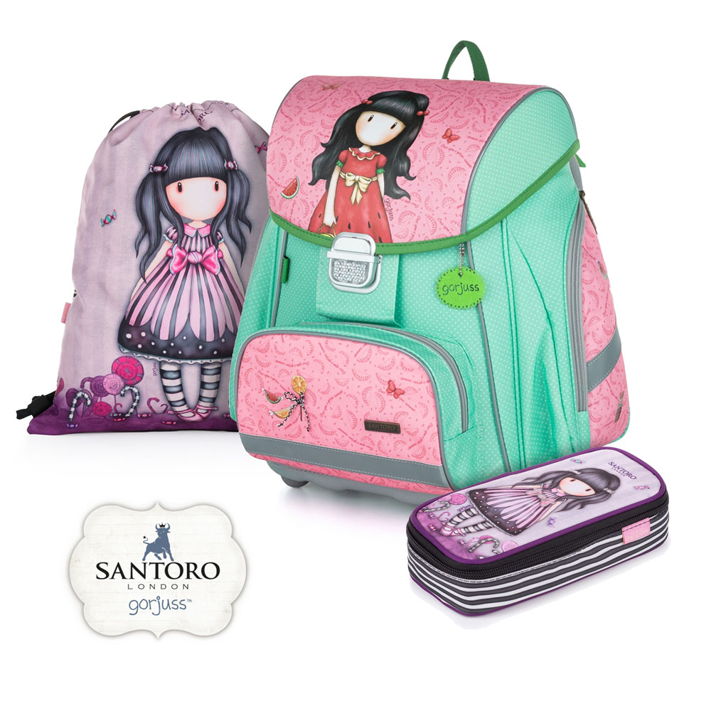 Školní set pro prvňáčka s motivem Santoro. Set obsahuje školní batoh Premium, sáček na cvičky a etui comfort .