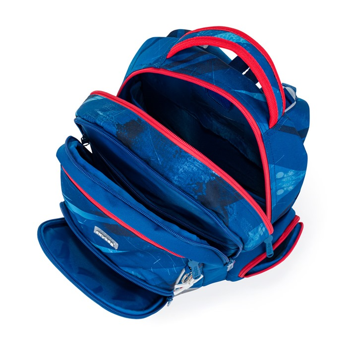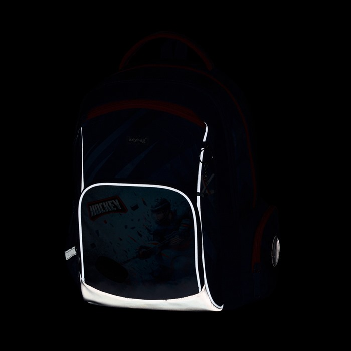 Školní batoh OXY GO zaujme moderním designem a promyšlenou funkčností. Má anatomicky tvarovaná, prodyšná záda a nastavitelné ramenní popruhy pro pohodlné nošení. Přidané háčky umožňují uchycení dlouhých popruhů. Vnitřní kapsy nabízí dostatek místa na učebnice, sešity i další potřeby, pevné nepromokavé dno chrání obsah před ušpiněním a protečením. Boční kapsy, jedna na zip a jedna otevřená, slouží např. na láhev. Reflexní prvky zajišťují bezpečnost. Batoh je ideální pro děti od 1. do 3. třídy vysoké od 125 cm. Délka zádového panelu je 39 cm, objem 22 l, hmotnost 930 g, nosnost 8 kg. Sáček: Praktický na cvičky nebo volnočasové aktivity, uzavírá se šňůrkami. Penál: Jednopatrový se dvěma chlopněmi, poutka na psací potřeby a průhledná fólie na rozvrh hodin.