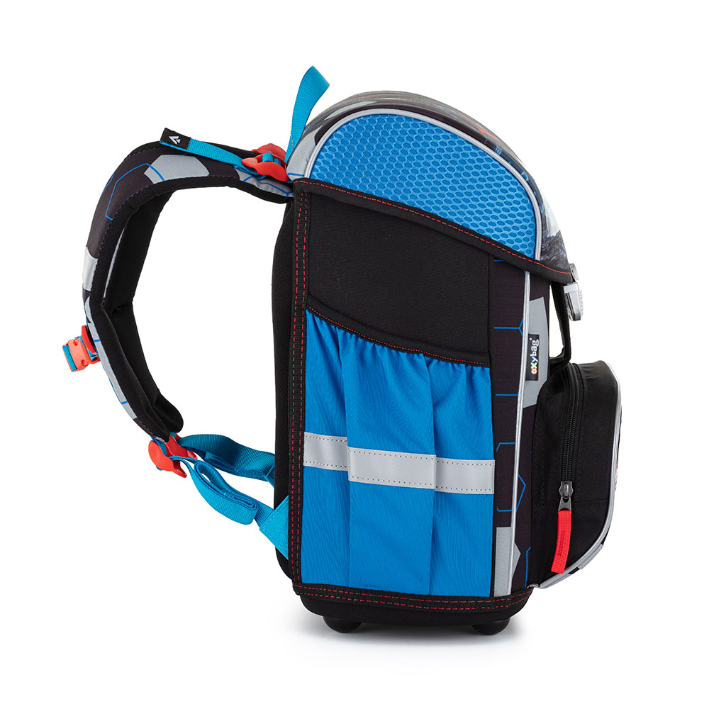 Aktovka: Školní aktovka z řady Premium je anatomicky tvarovaná a zajišťuje tak správné usazení na zádech. Vyztužená záda a vnitřní výztuha udržují stálý tvar batohu. Polstrování je z příjemného prodyšného materiálu, široké měkčené popruhy jsou navrženy tak, aby dokonale přilnuly a rovnoměrně zatížily ramena dítěte. Aktovka se skládá z jedné prostorné komory, kam se pohodlně vejdou všechny školní pomůcky pro děti v 1. a ve 2. třídě. Dno batohu je z pevného materiálu, chrání tím obsah před převržením a vysypáním. Zapínání je na bezpečnostní přezku. Přední kapsička je určena na svačinu, nechybí řada reflexních prvků, díky kterým je aktovka viditelnější. Objem: 28 l. Nosnost: 8 kg. Sáček: Školní sáček na cvičky vyrobený z kvalitního materiálu. Sáček se uzavírá stažením šňůrek. Vhodný jak do školy, tak na sport a další volnočasové aktivity dětí. Penál: Jednopatrový školní penál se dvěma chlopněmi bez náplně. Gumová poutka k uchycení psacích potřeb. Na vnitřní chlopni je průhledná fólie pro rozvrh hodin.