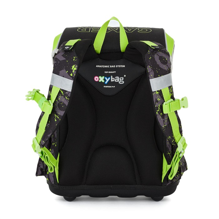 Aktovka: Školní aktovka z řady Premium je anatomicky tvarovaná a zajišťuje tak správné usazení na zádech. Vyztužená záda a vnitřní výztuha udržují stálý tvar batohu. Polstrování je z příjemného prodyšného materiálu, široké měkčené popruhy jsou navrženy tak, aby dokonale přilnuly a rovnoměrně zatížily ramena dítěte. Aktovka se skládá z jedné prostorné komory, kam se pohodlně vejdou všechny školní pomůcky pro děti v 1. a ve 2. třídě. Dno batohu je z pevného materiálu, chrání tím obsah před převržením a vysypáním. Zapínání je na bezpečnostní kovovou přezku s reflexní odrazkou. Přední kapsička je určena na svačinu, nechybí řada reflexních prvků, díky kterým je aktovka viditelnější. Délka zádového panelu: 33 cm. Objem: 27 l. Nosnost: 8 kg. Sáček: Praktický sáček na cvičky nebo přezůvky do školy. Uzavírá se snadno stažením šňůrek. Penál: Jednopatrový školní penál se dvěma chlopněmi bez náplně. Gumová poutka k uchycení psacích potřeb. Na vnitřní chlopni je průhledná fólie na rozvrh hodin.