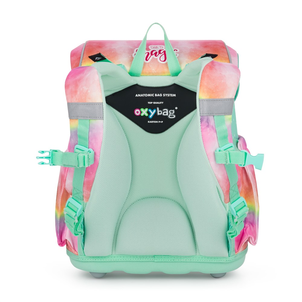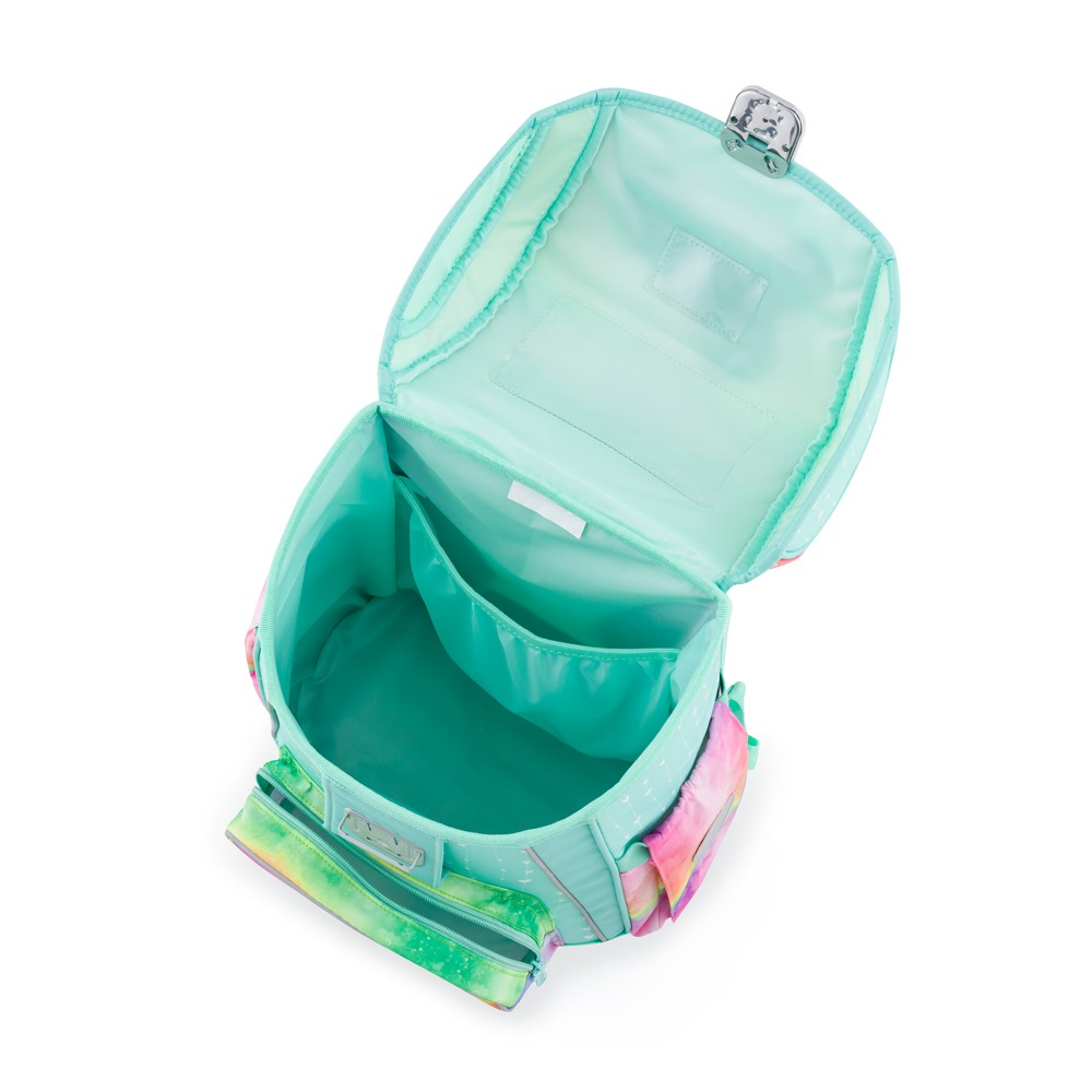 Aktovka: Školní aktovka z řady Premium je anatomicky tvarovaná a zajišťuje tak správné usazení na zádech. Vyztužená záda a vnitřní výztuha udržují stálý tvar batohu. Polstrování je z příjemného prodyšného materiálu, široké měkčené popruhy jsou navrženy tak, aby dokonale přilnuly a rovnoměrně zatížily ramena dítěte. Aktovka se skládá z jedné prostorné komory, kam se pohodlně vejdou všechny školní pomůcky pro děti v 1. a ve 2. třídě. Dno batohu je z pevného materiálu, chrání tím obsah před převržením a vysypáním. Zapínání je na bezpečnostní kovovou přezku s reflexní odrazkou. Přední kapsička je určena na svačinu, nechybí řada reflexních prvků, díky kterým je aktovka viditelnější. Délka zádového panelu: 33 cm. Objem: 27 l. Nosnost: 8 kg. Sáček: Praktický sáček na cvičky nebo přezůvky do školy. Uzavírá se snadno stažením šňůrek. Penál: Jednopatrový školní penál se dvěma chlopněmi bez náplně. Gumová poutka k uchycení psacích potřeb. Na vnitřní chlopni je průhledná fólie na rozvrh hodin.