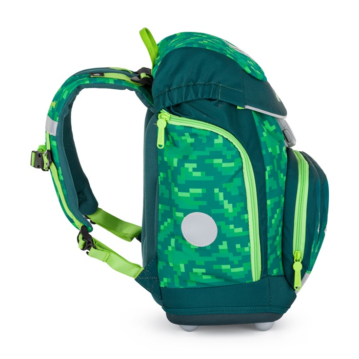 Výhodný set batohu, penálu, sáčku na cvičky a vyměnitelných placek. Školní batoh z řady OXY Sherpy je ideální volbou pro děti od 1. do 3. třídy. Batoh má anatomicky tvarovaný zádový panel, polstrované ramenní popruhy a nastavitelný hrudní popruh, což zajišťuje pohodlí a správné držení těla. Pevné dno opatřené plastovými nožkami zabraňuje převrhnutí a umožňuje batohu stát samostatně. Vnitřní rozřaďovač pomáhá udržet pořádek, zatímco zapínání hlavní komory na stahovací šňůrku a magnetické zapínání je praktické a snadno ovladatelné jednou rukou. Boční kapsy na zip jsou ideální na lahev s pitím, přední kapsa na svačinu poskytuje další úložný prostor. Nechybí reflexní prvky pro větší bezpečnost dítěte. Díky vyměnitelným plackám na suchý zip si může každý školák přizpůsobit design batohu podle svého vkusu. Batoh je doporučen pro děti vysoké od 121 cm. Délka zádového panelu je 33 cm, objem činí 28 l, hmotnost batohu je 950 g a jeho nosnost je 8 kg.