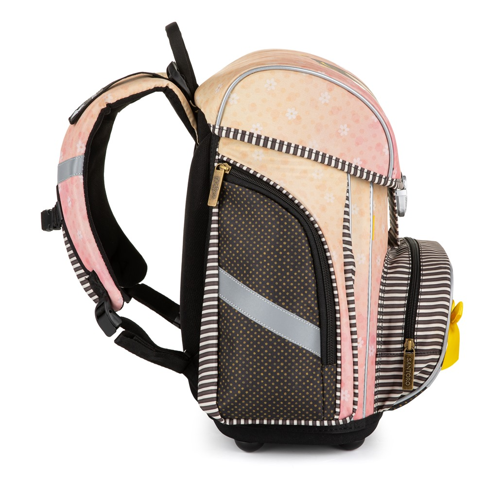 Aktovka: Školní aktovka z řady Premium je anatomicky tvarovaná a zajišťuje tak správné usazení na zádech. Vyztužená záda a vnitřní výztuha udržují stálý tvar batohu. Polstrování je z příjemného prodyšného materiálu, široké měkčené popruhy jsou navrženy tak, aby dokonale přilnuly a rovnoměrně zatížily ramena dítěte. Aktovka se skládá z jedné prostorné komory, kam se pohodlně vejdou všechny školní pomůcky pro děti v 1. a ve 2. třídě. Dno batohu je z pevného materiálu, chrání tím obsah před převržením a vysypáním. Zapínání je na bezpečnostní přezku. Přední kapsička je určena na svačinu, nechybí řada reflexních prvků, díky kterým je aktovka viditelnější.
