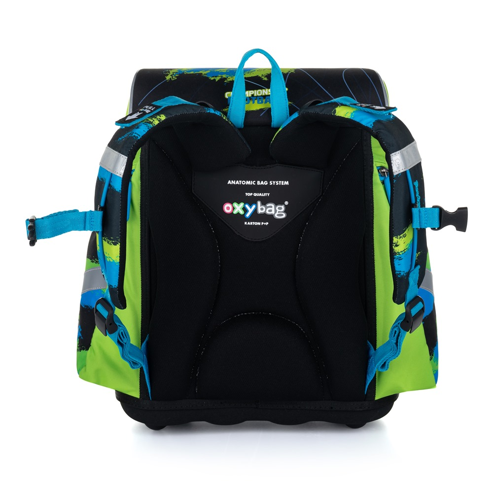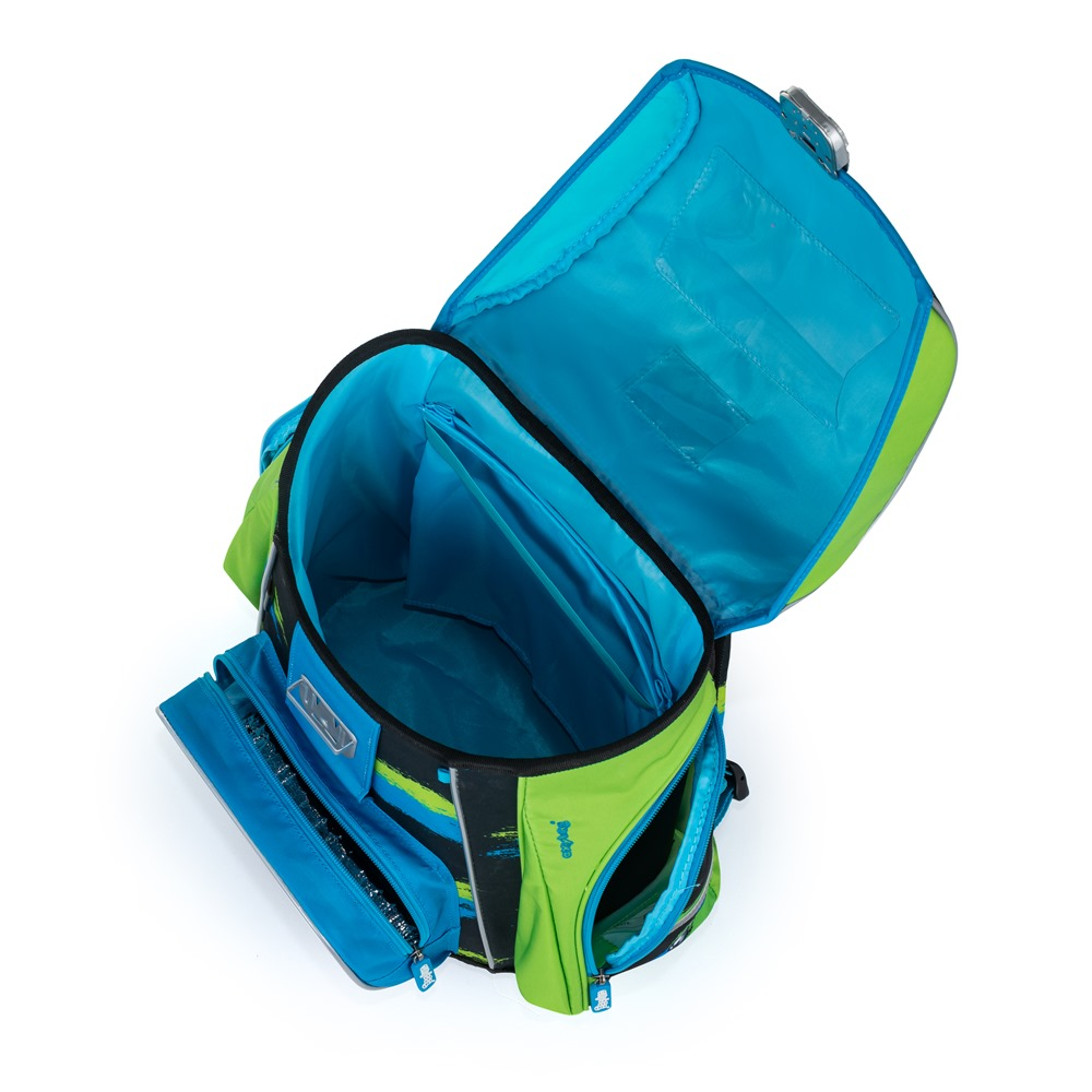 Aktovka: Školní aktovka z řady Premium je anatomicky tvarovaná a zajišťuje tak správné usazení na zádech. Vyztužená záda a vnitřní výztuha udržují stálý tvar batohu. Polstrování je z příjemného prodyšného materiálu, široké měkčené popruhy jsou navrženy tak, aby dokonale přilnuly a rovnoměrně zatížily ramena dítěte. Aktovka se skládá z jedné prostorné komory, kam se pohodlně vejdou všechny školní pomůcky pro děti v 1. a ve 2. třídě. Dno batohu je z pevného materiálu, chrání tím obsah před převržením a vysypáním. Zapínání je na bezpečnostní přezku. Přední kapsička je určena na svačinu, nechybí řada reflexních prvků, díky kterým je aktovka viditelnější.