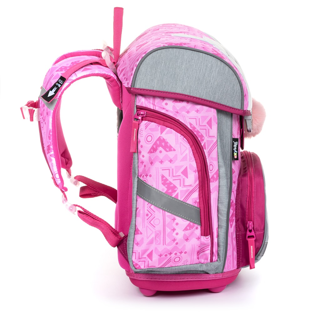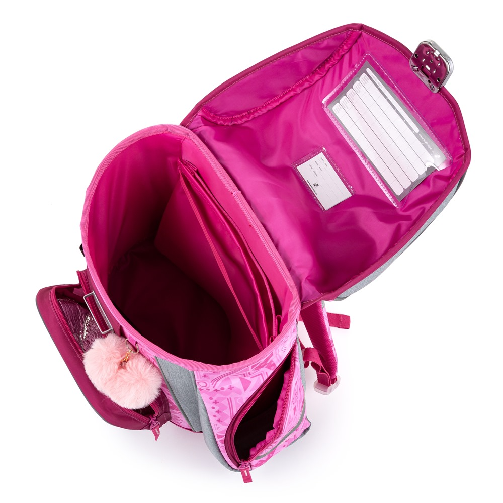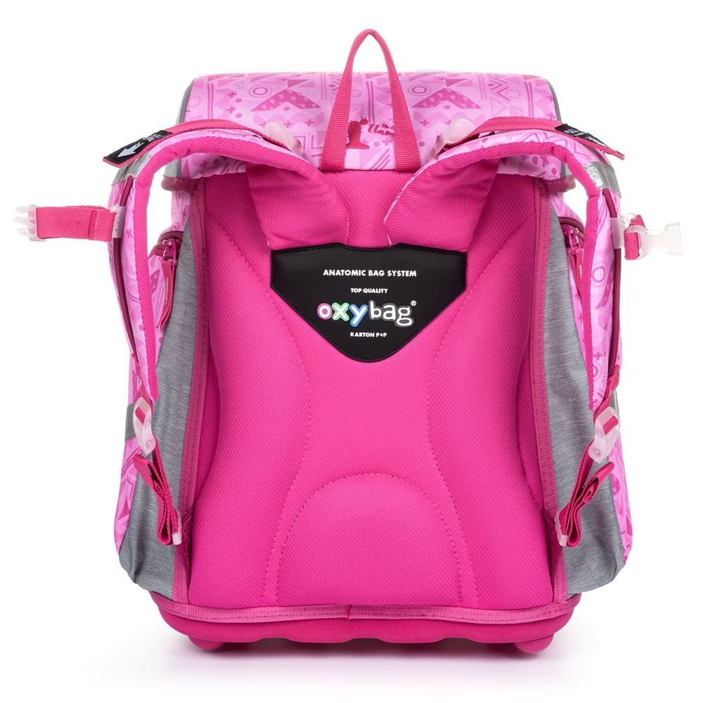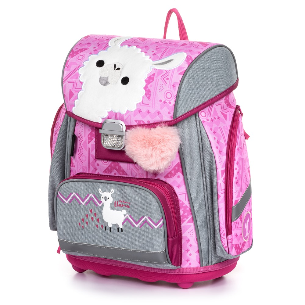 Aktovka: Školní aktovka z řady Premium s motivem lamy je anatomicky tvarovaná a zajišťuje tak správné usazení na zádech. Vyztužená záda a vnitřní výztuha udržují stálý tvar batohu. Polstrování je z příjemného prodyšného materiálu, široké měkčené popruhy jsou navrženy tak, aby dokonale přilnuly a rovnoměrně zatížily ramena dítěte. Aktovka se skládá z jedné prostorné komory, kam se pohodlně vejdou všechny školní pomůcky pro děti v 1. a ve 2. třídě. Dno batohu je z pevného materiálu, chrání tím obsah před převržením a vysypáním. Zapínání je na bezpečnostní přezku. Přední kapsička je určena na svačinu, nechybí řada reflexních prvků, díky kterým je aktovka viditelnější.