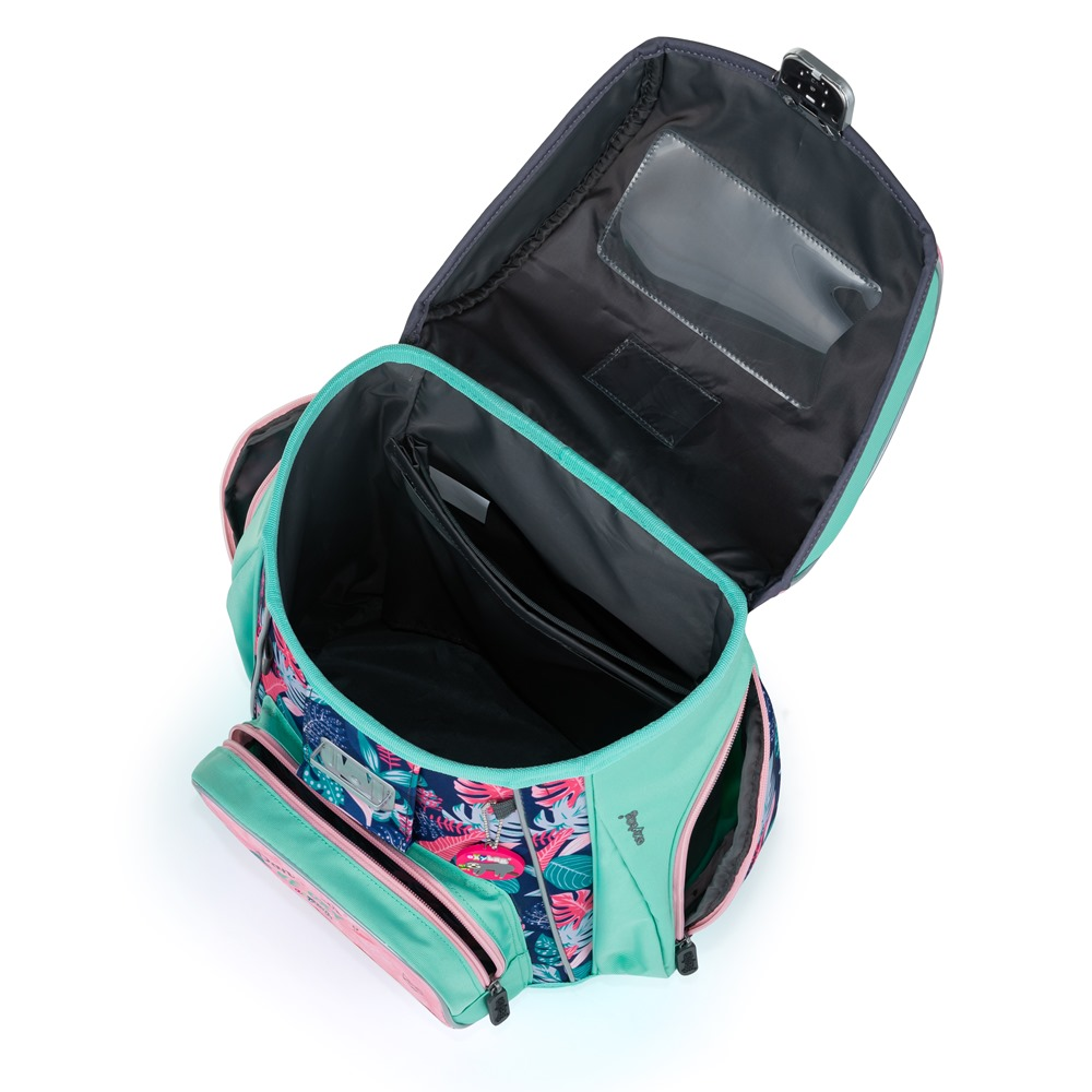 Aktovka: Školní aktovka z řady Premium s motivem lenochoda je anatomicky tvarovaná a zajišťuje tak správné usazení na zádech. Vyztužená záda a vnitřní výztuha udržují stálý tvar batohu. Polstrování je z příjemného prodyšného materiálu, široké měkčené popruhy jsou navrženy tak, aby dokonale přilnuly a rovnoměrně zatížily ramena dítěte. Aktovka se skládá z jedné prostorné komory, kam se pohodlně vejdou všechny školní pomůcky pro děti v 1. a ve 2. třídě. Dno batohu je z pevného materiálu, chrání tím obsah před převržením a vysypáním. Zapínání je na bezpečnostní přezku. Přední kapsička je určena na svačinu, nechybí řada reflexních prvků, díky kterým je aktovka viditelnější.