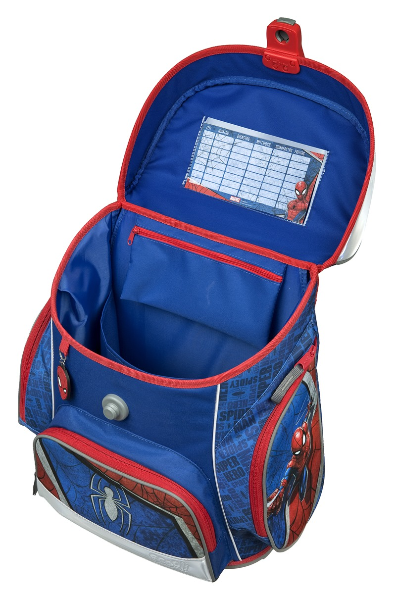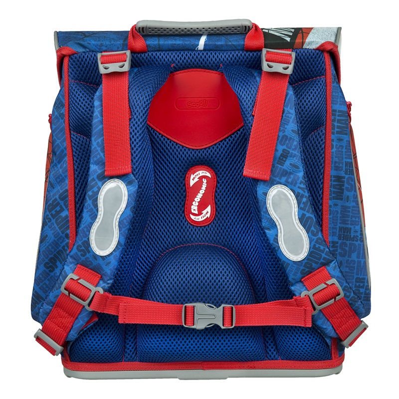 Školní aktovka Scooli s motivem Spidermana je anatomicky tvarovaná a zajišťuje tak správné usazení na zádech. Vyztužená záda a vnitřní výztuha udržují stálý tvar batohu. Polstrování je z příjemného prodyšného materiálu, široké měkčené popruhy jsou navrženy tak, aby dokonale přilnuly a rovnoměrně zatížily ramena dítěte. Aktovka se skládá z jedné prostorné komory, kam se pohodlně vejdou všechny školní pomůcky pro děti v 1. a ve 2. třídě. Dno batohu je z pevného materiálu, chrání tím obsah před převržením a vysypáním. Zapínání je na bezpečnostní přezku. Přední kapsička je určena na svačinu, nechybí řada reflexních prvků, díky kterým je aktovka viditelnější.