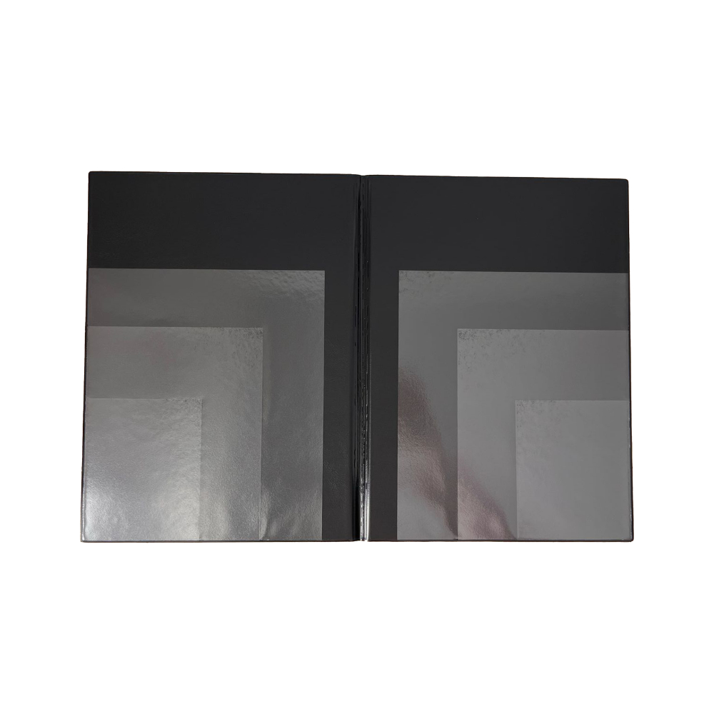Klasické archivační dvojdesky. Uvnitř opatřené vícenásobnými průhlednými bočními kapsami pro uložení dokumentů a propagačních materiálů.