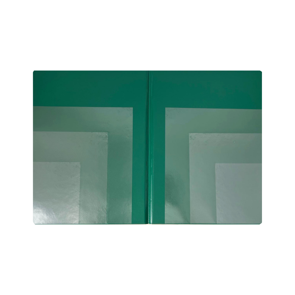 Klasické archivační dvojdesky. Uvnitř opatřené vícenásobnými průhlednými bočními kapsami pro uložení dokumentů a propagačních materiálů.