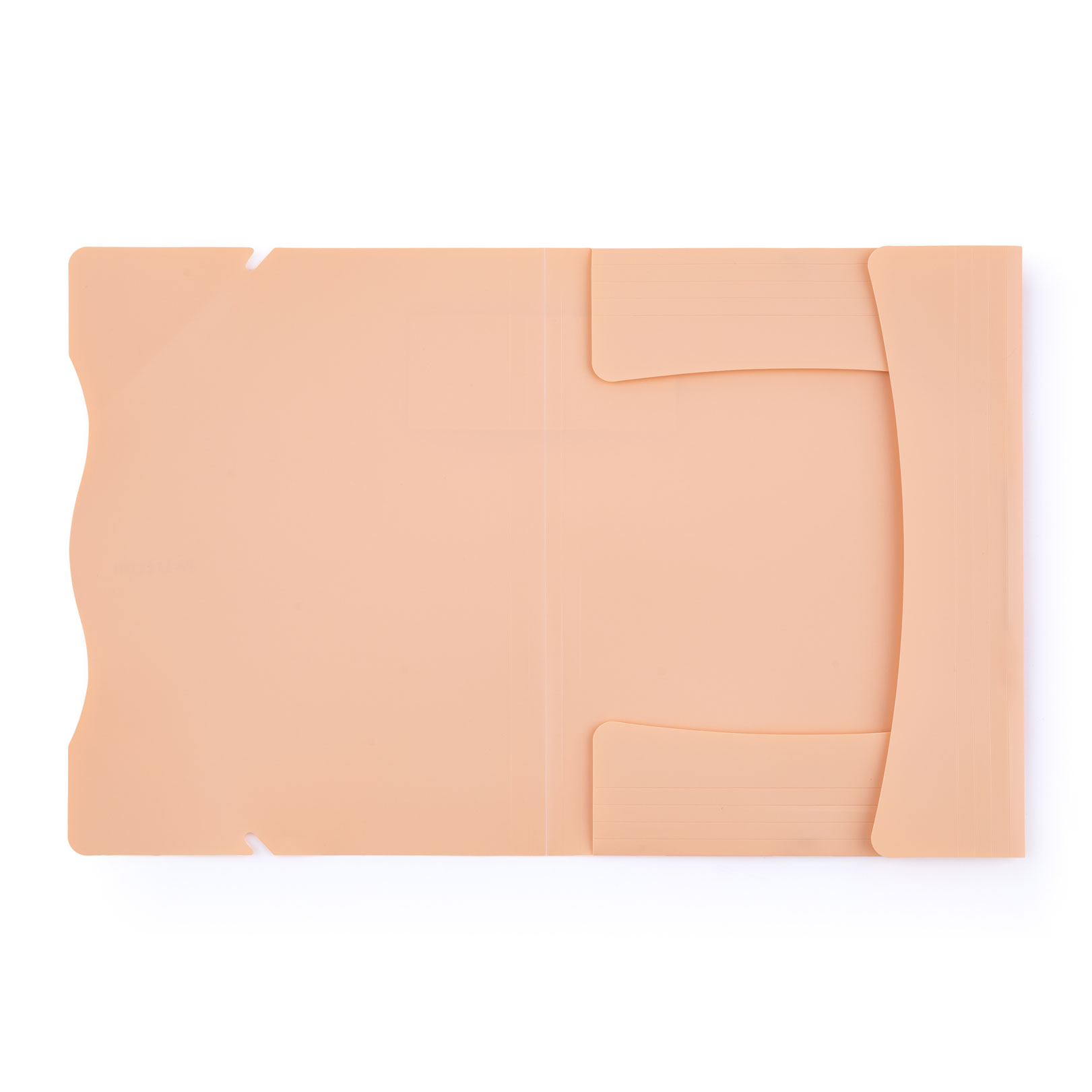 Desky se třemi chlopněmi. Uzavírání pomocí gumičky. Materiál polypropylen, síla 450 mic. Roztažitelný hřbet až 3,0 cm. Kapacita 250 listů. Pro formát A4
