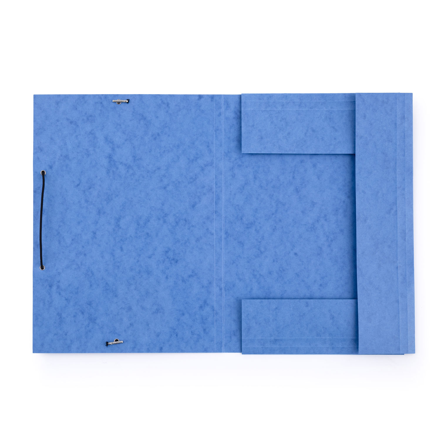 Desky se třemi chlopněmi. Uzavírání pomocí gumičky. Roztažitelný hřbet. Kapacita cca 250 listů. Síla materiálu 350gr. Pro formát A4