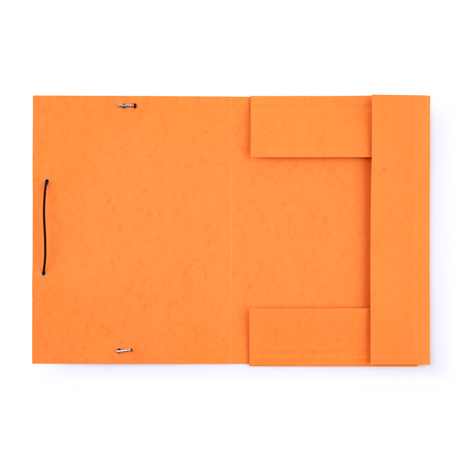 Desky se třemi chlopněmi. Uzavírání pomocí gumičky. Roztažitelný hřbet. Kapacita cca 250 listů. Síla materiálu 350gr. Pro formát A4