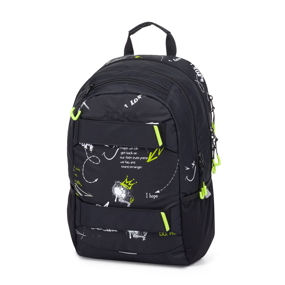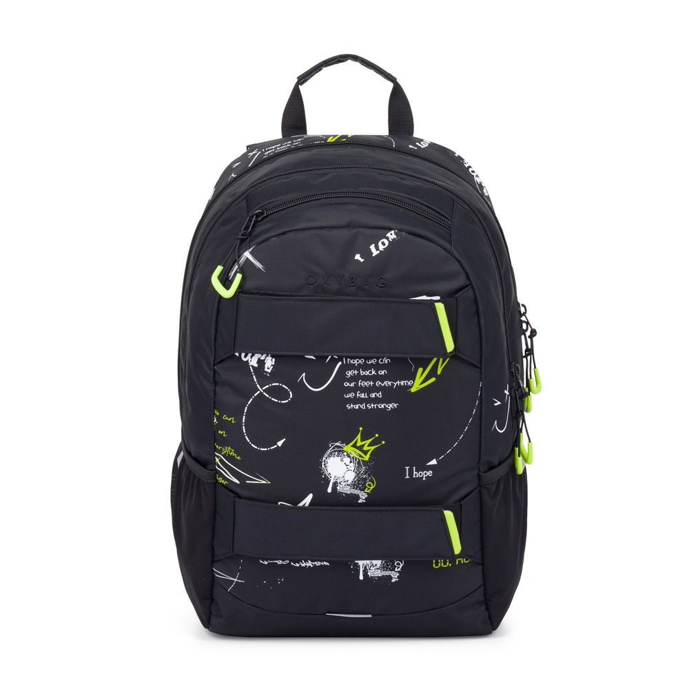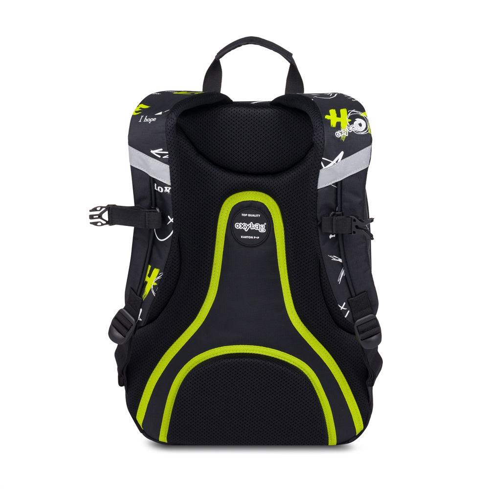 Výhodný set batohu a studentské etue. Batoh: Studentský i volnočasový školní batoh řady OXY SPORT vyniká ergonomicky tvarovanými zády, nastavitelnými polstrovanými ramenními popruhy a hrudním popruhem, díky kterým se pohodlně nosí. Batoh se skládá ze dvou hlavních komor a jedné menší přední kapsičky opatřenými pevnými zipy a praktickými poutky. Uvnitř batohu je vyztužená kapsa na notebook, karabina na klíče, menší kapsa na drobnosti a skrytá kapsa na zádech. Nechybí také boční kapsa na lahev na pití a řada reflexních prvků, díky kterým je batoh lépe viditelný. Batoh je ideální jak pro školáky na druhém stupni tak i pro volnočasové aktivity studentů a dospělých. Délka zádového panelu je 46 cm, objem činí 24 l, hmotnost batohu je 870 g a jeho nosnost je 8 kg. Etue: Studentské pouzdro na psací potřeby s praktickou elastickou gumou, uzavírání na zip.