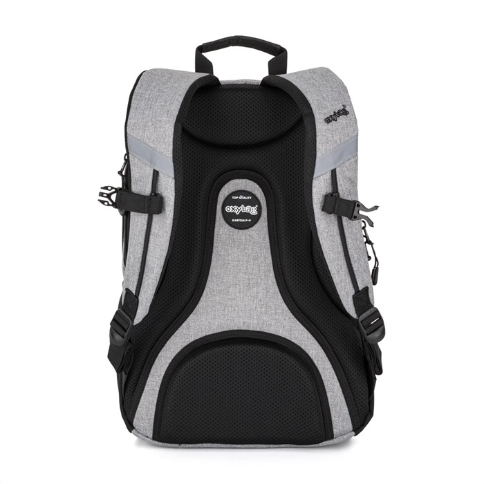 Výhodný set batohu a studentské etue. Batoh: Studentský i volnočasový školní batoh řady OXY SPORT vyniká ergonomicky tvarovanými zády, nastavitelnými polstrovanými ramenními popruhy a hrudním popruhem, díky kterým se pohodlně nosí. Batoh se skládá ze dvou hlavních komor a jedné menší přední kapsičky opatřenými pevnými zipy a praktickými poutky. Uvnitř batohu je vyztužená kapsa na notebook, karabina na klíče, menší kapsa na drobnosti a skrytá kapsa na zádech. Nechybí také boční kapsa na lahev na pití a řada reflexních prvků, díky kterým je batoh lépe viditelný. Batoh je ideální jak pro školáky na druhém stupni tak i pro volnočasové aktivity studentů a dospělých. Délka zádového panelu je 46 cm, objem činí 24 l, hmotnost batohu je 870 g a jeho nosnost je 8 kg. Etue: Studentské pouzdro na psací potřeby s praktickou elastickou gumou, uzavírání na zip.