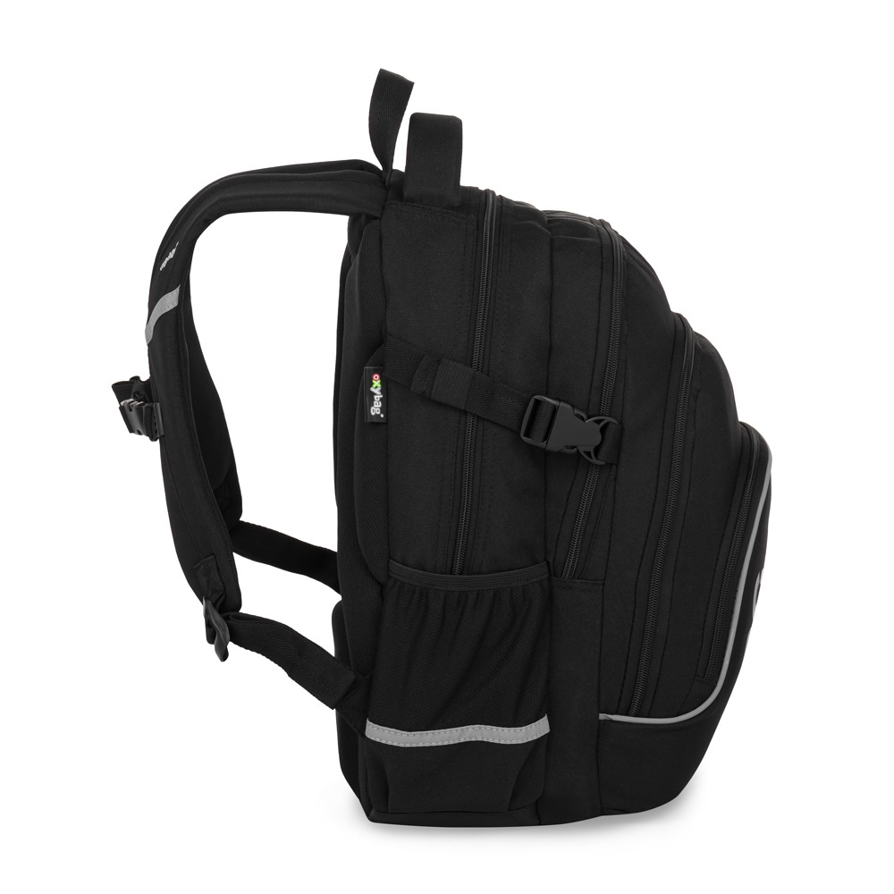 Batoh OXY Scooler je ideální volbou pro školáky od 3. třídy, kteří potřebují dostatek prostoru na všechno důležité. Tříkomorový batoh nabízí spoustu místa na učebnice, sešity i svačinu, nechybí organizér na drobnosti, vnitřní kapsa a přihrádka na notebook. Boční kapsa je perfektní na láhev s pitím, zatímco držák na klíče nebo čip ušetří jejich zdlouhavé hledání. Díky anatomicky tvarovaným prodyšným zádům, nastavitelným ramenním popruhům a hrudnímu popruhu sedí batoh pohodlně na zádech i při delším nošení. Zpevněné nepromokavé dno chrání obsah před vlhkostí, reflexní prvky zajišťují větší bezpečnost na cestě do školy i zpět. Spolehlivý parťák pro školní dny i volnočasové aktivity. Délka zádového panelu je 43 cm, objem činí 28 l, hmotnost batohu je 780 g a jeho nosnost je 8 kg.