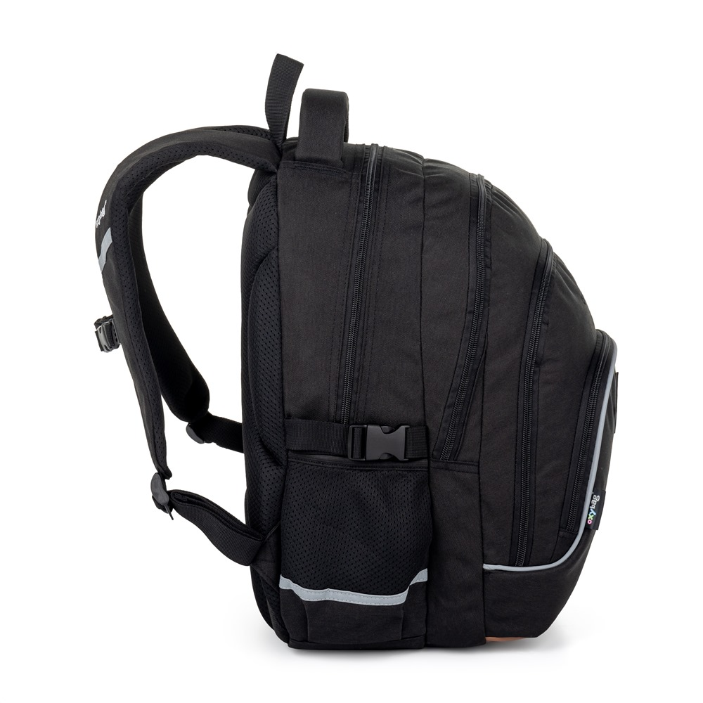 Oxy Scooler je tříkomorový batoh pro žáky i studenty s boční kapsou na láhev, organizérem, vnitřní malou kapsou a disponuje také kapsou na notebook do velikosti 15''. Nastavitelné ramenní popruhy i hrudní popruh společně s anatomicky tvarovaným prodyšným zádovým systémem přinášejí maximální pohodlí při nošení. Samozřejmě nechybí reflexní prvky.