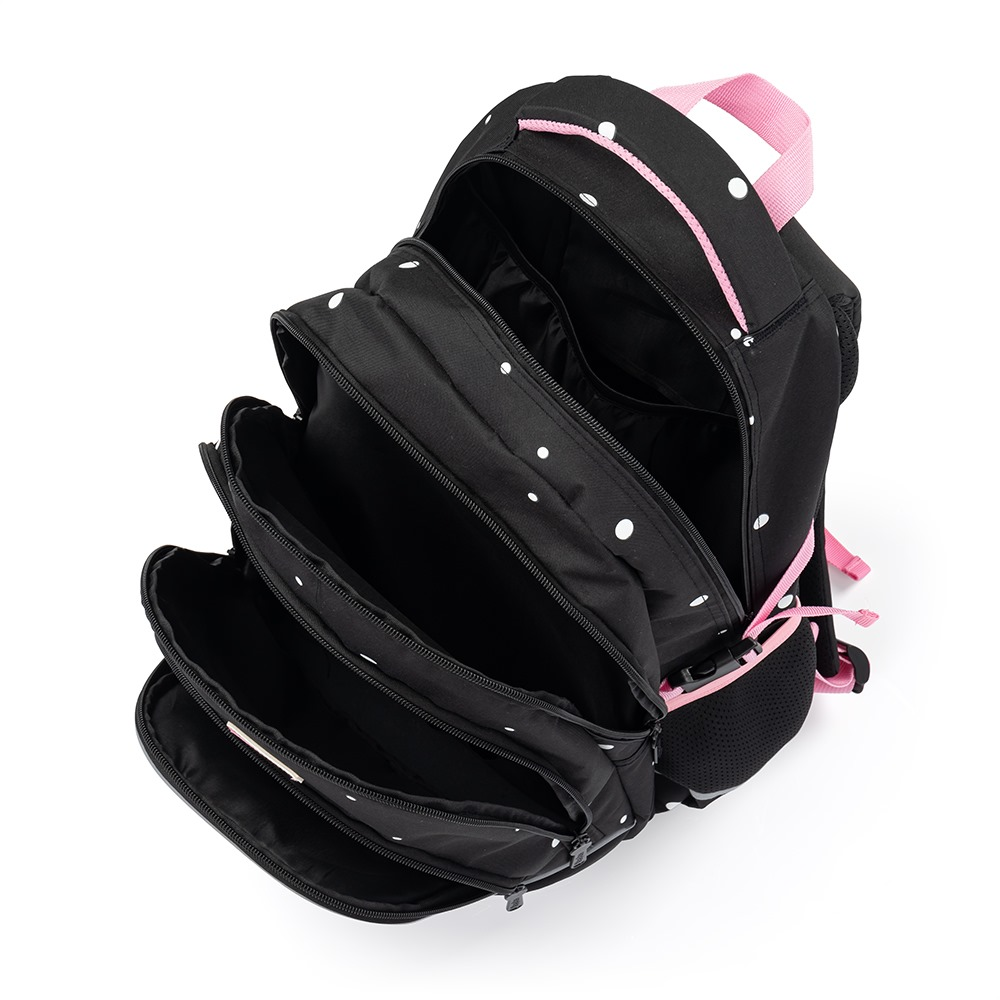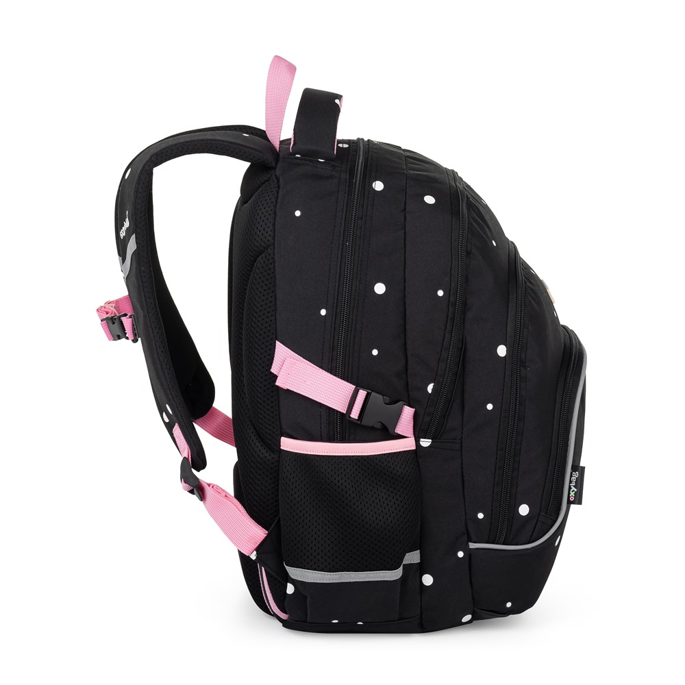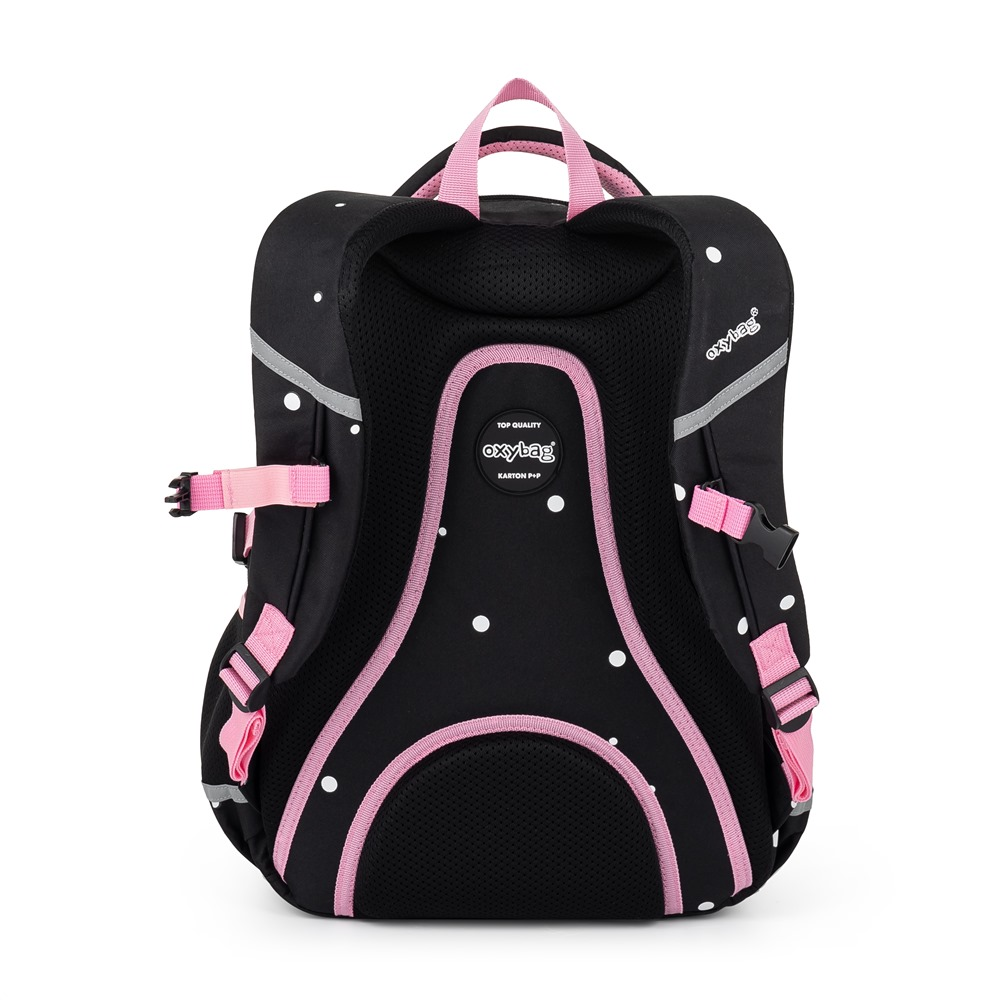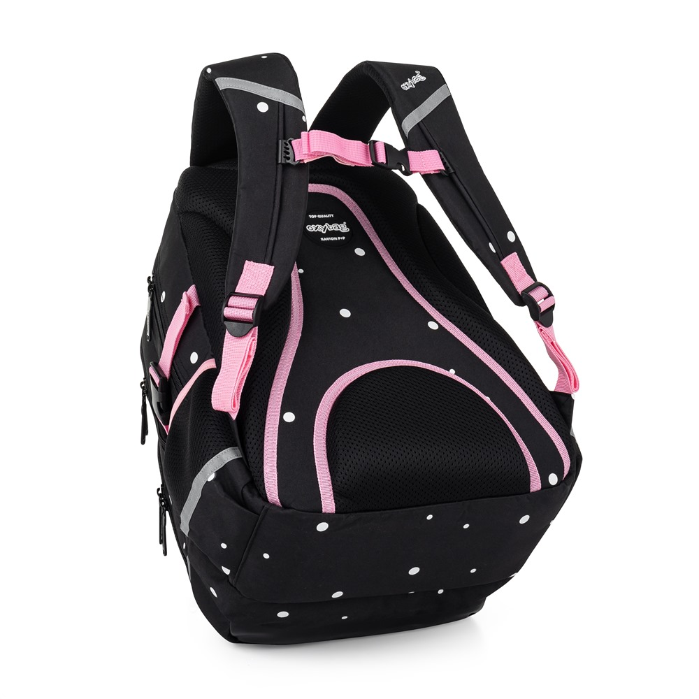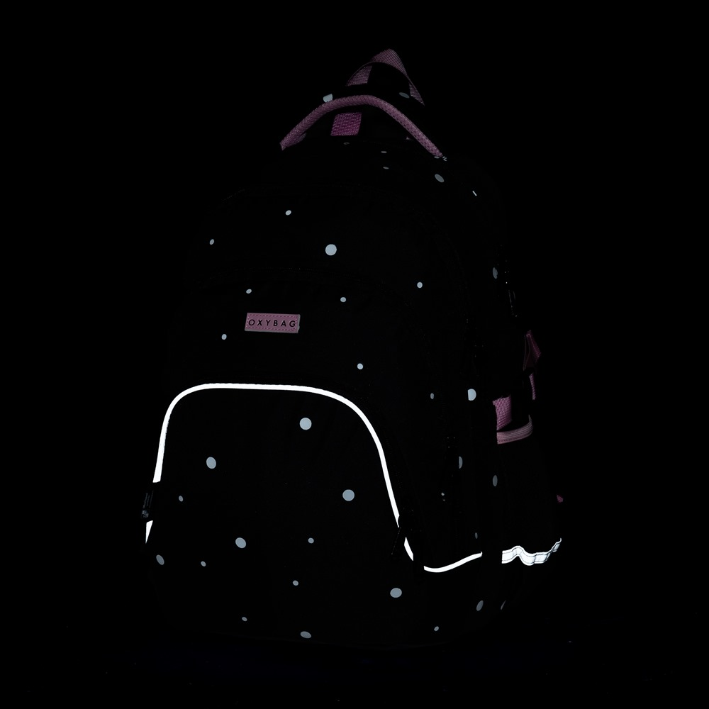 Batoh OXY Scooler je ideální volbou pro školáky od 3. třídy, kteří potřebují dostatek prostoru na všechno důležité. Tříkomorový batoh nabízí spoustu místa na učebnice, sešity i svačinu, nechybí organizér na drobnosti, vnitřní kapsa a přihrádka na notebook. Boční kapsa je perfektní na láhev s pitím, zatímco držák na klíče nebo čip ušetří jejich zdlouhavé hledání. Díky anatomicky tvarovaným prodyšným zádům, nastavitelným ramenním popruhům a hrudnímu popruhu sedí batoh pohodlně na zádech i při delším nošení. Zpevněné nepromokavé dno chrání obsah před vlhkostí, reflexní prvky zajišťují větší bezpečnost na cestě do školy i zpět. Spolehlivý parťák pro školní dny i volnočasové aktivity. Délka zádového panelu je 43 cm, objem činí 28 l, hmotnost batohu je 780 g a jeho nosnost je 8 kg.