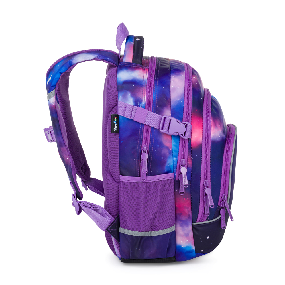 Batoh OXY Scooler je ideální volbou pro školáky od 3. třídy, kteří potřebují dostatek prostoru na všechno důležité. Tříkomorový batoh nabízí spoustu místa na učebnice, sešity i svačinu, nechybí organizér na drobnosti, vnitřní kapsa a přihrádka na notebook. Boční kapsa je perfektní na láhev s pitím, zatímco držák na klíče nebo čip ušetří jejich zdlouhavé hledání. Díky anatomicky tvarovaným prodyšným zádům, nastavitelným ramenním popruhům a hrudnímu popruhu sedí batoh pohodlně na zádech i při delším nošení. Zpevněné nepromokavé dno chrání obsah před vlhkostí, reflexní prvky zajišťují větší bezpečnost na cestě do školy i zpět. Spolehlivý parťák pro školní dny i volnočasové aktivity. Délka zádového panelu je 43 cm, objem činí 28 l, hmotnost batohu je 780 g a jeho nosnost je 8 kg.