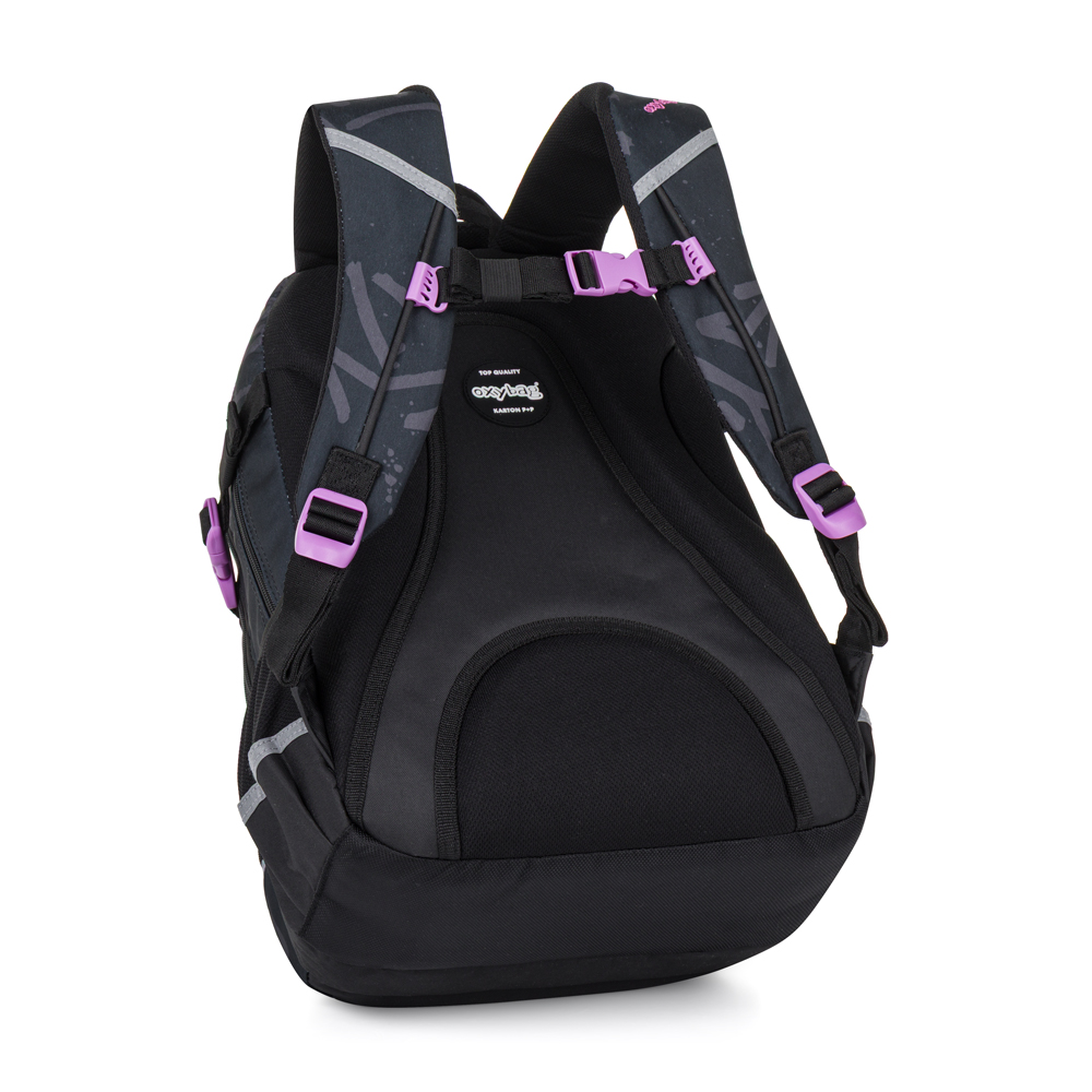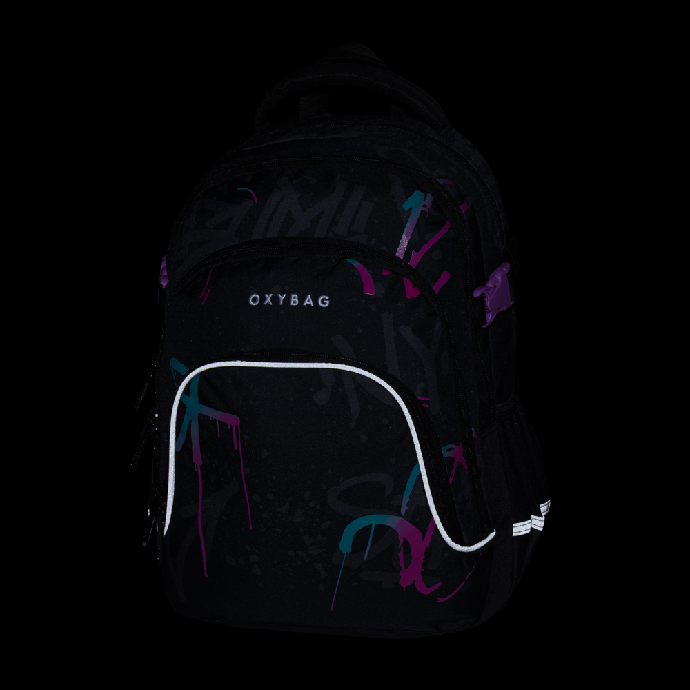 Batoh OXY Scooler je ideální volbou pro školáky od 3. třídy, kteří potřebují dostatek prostoru na všechno důležité. Tříkomorový batoh nabízí spoustu místa na učebnice, sešity i svačinu, nechybí organizér na drobnosti, vnitřní kapsa a přihrádka na notebook. Boční kapsa je perfektní na láhev s pitím, zatímco držák na klíče nebo čip ušetří jejich zdlouhavé hledání. Díky anatomicky tvarovaným prodyšným zádům, nastavitelným ramenním popruhům a hrudnímu popruhu sedí batoh pohodlně na zádech i při delším nošení. Zpevněné nepromokavé dno chrání obsah před vlhkostí, reflexní prvky zajišťují větší bezpečnost na cestě do školy i zpět. Spolehlivý parťák pro školní dny i volnočasové aktivity. Délka zádového panelu je 43 cm, objem činí 28 l, hmotnost batohu je 780 g a jeho nosnost je 8 kg.