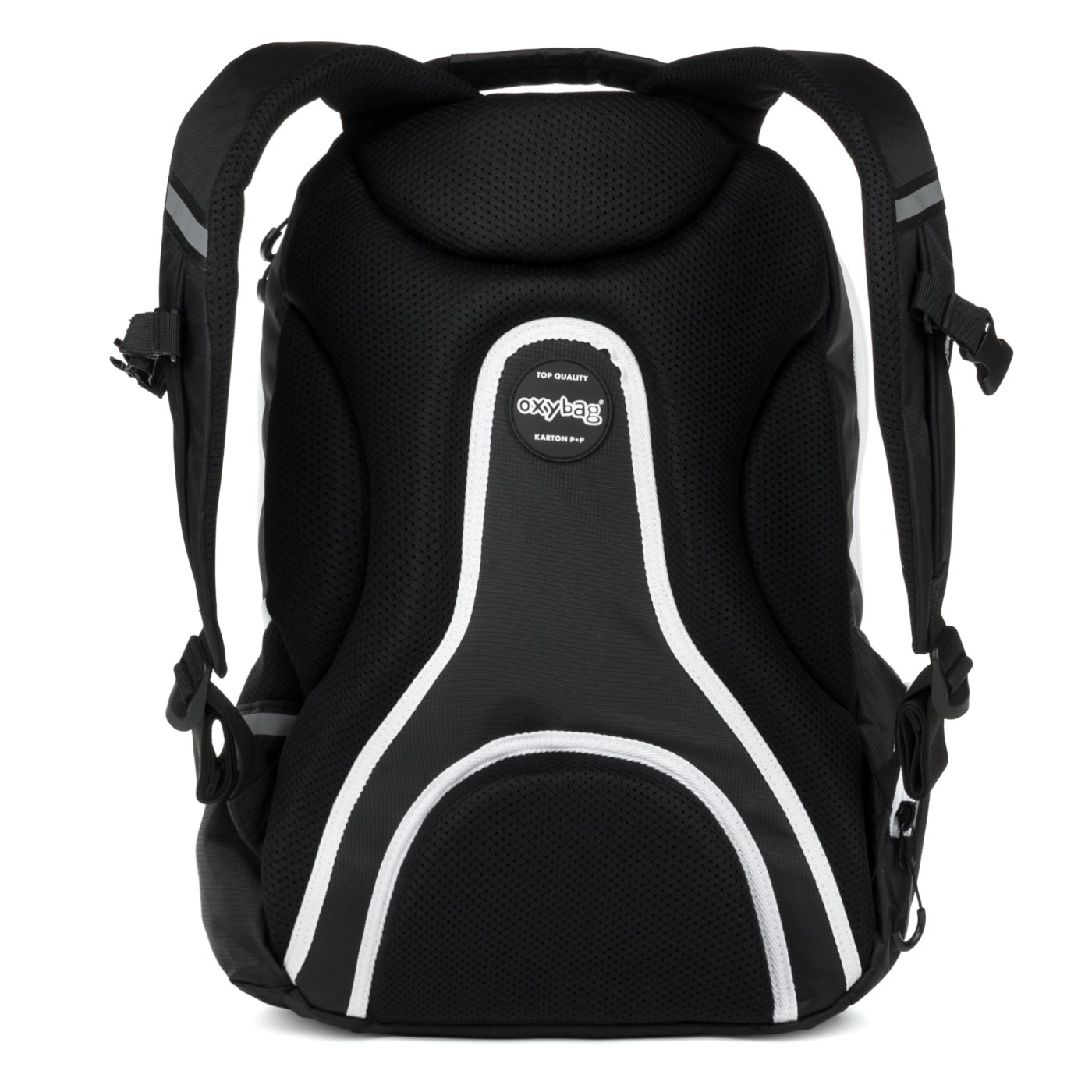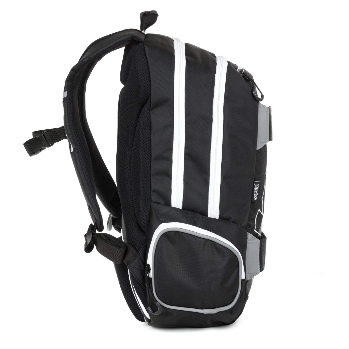 Studentský i volnočasový školní batoh řady OXY SPORT vyniká ergonomicky tvarovanými zády, nastavitelnými polstrovanými ramenními popruhy a hrudním popruhem, díky kterým se pohodlně nosí. Batoh se skládá ze dvou hlavních komor a jedné menší přední kapsičky opatřenými pevnými zipy a praktickými poutky. Uvnitř batohu je vyztužená kapsa na notebook do 15'', karabina na klíče a menší kapsa na drobnosti. Nechybí také boční kapsa na lahev na pití a řada reflexních prvků, díky kterým je batoh lépe viditelný. Batoh je ideální jak do školy pro školáky na druhém stupni tak i pro volnočasové aktivity studentů a dospělých.