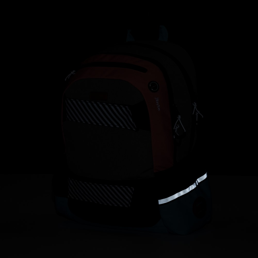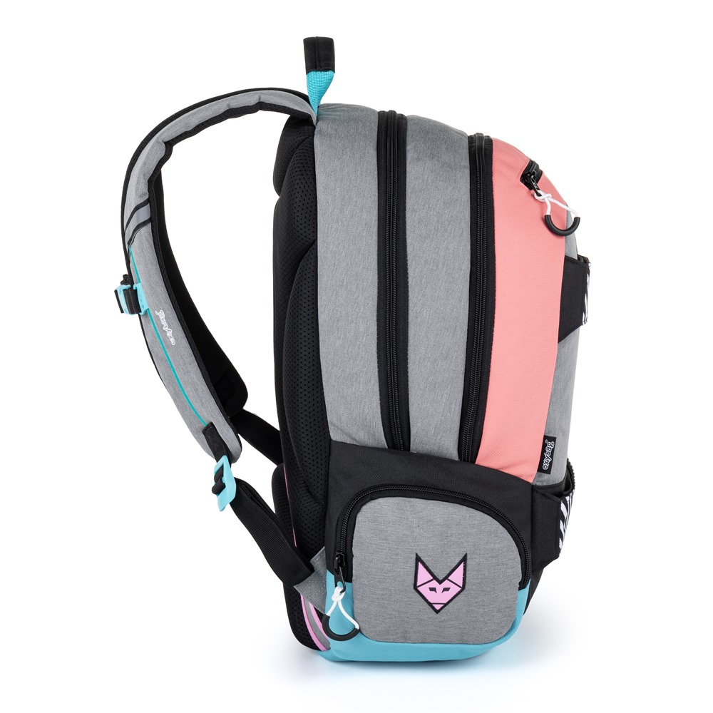 Studentský i volnočasový školní batoh řady OXY SPORT vyniká ergonomicky tvarovanými zády, nastavitelnými polstrovanými ramenními popruhy a hrudním popruhem, díky kterým se pohodlně nosí. Batoh se skládá ze dvou hlavních komor a jedné menší přední kapsičky opatřenými pevnými zipy a praktickými poutky. Uvnitř batohu je vyztužená kapsa na notebook do 15'', karabina na klíče a menší kapsa na drobnosti. Nechybí také boční kapsa na lahev na pití a řada reflexních prvků, díky kterým je batoh lépe viditelný. Batoh je ideální jak do školy pro školáky na druhém stupni tak i pro volnočasové aktivity studentů a dospělých.