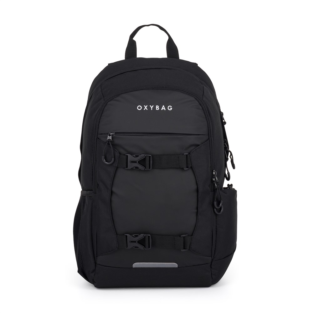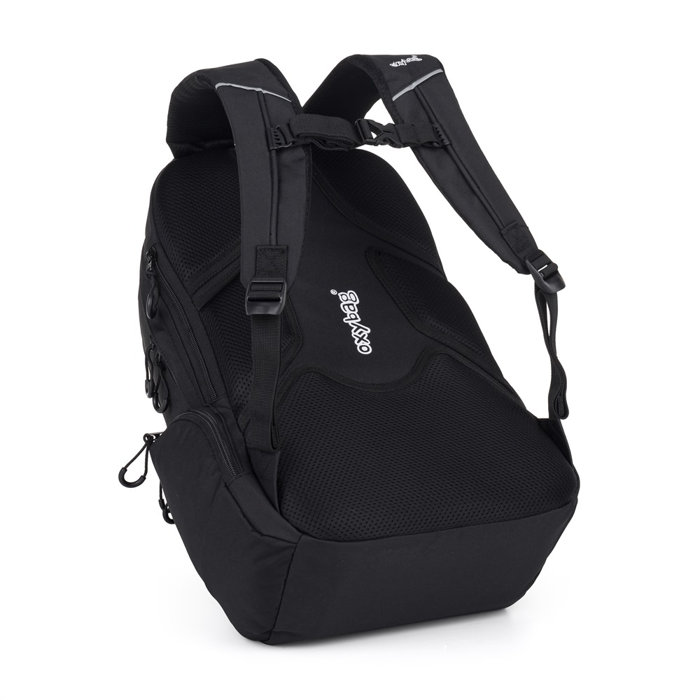Studentský batoh z řady OXY Zero je ideální společník do školy, práce i na volný čas. Odlehčená konstrukce, ergonomické polstrování zad a nastavitelné ramenní popruhy zajišťují pohodlí i při delším nošení. Tříkomorový batoh poskytuje dostatek prostoru na sešity, učebnice, dokumenty nebo osobní věci. Praktická kapsa na notebook, organizér s karabinou a skrytá kapsa v zádovém panelu pomáhají udržet vše přehledně uspořádané. Na přední straně batohu se nachází dvě přezky. Univerzální design se skvěle hodí na přednášky, do kanceláře i na výlety. Délka zádového panelu je 47 cm, objem činí 27 l, hmotnost batohu je 830 g a jeho nosnost je 8 kg.