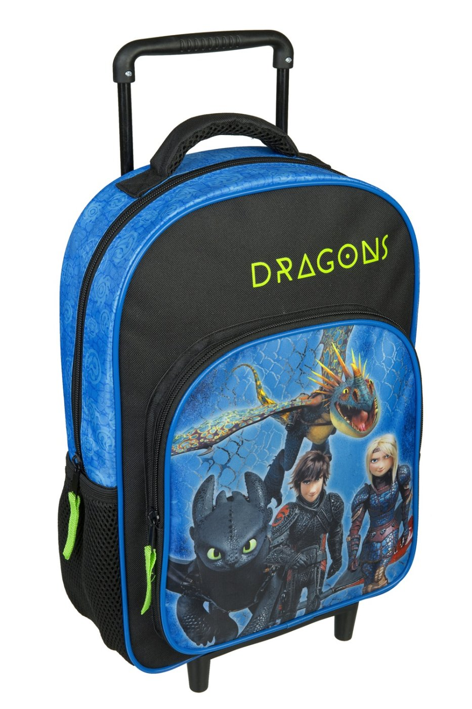 Dětský předškolní batoh na kolečkách se dvěma kapsami s motivem Jak vycvičit draka. Batůžek nemá ramenní popruhy.