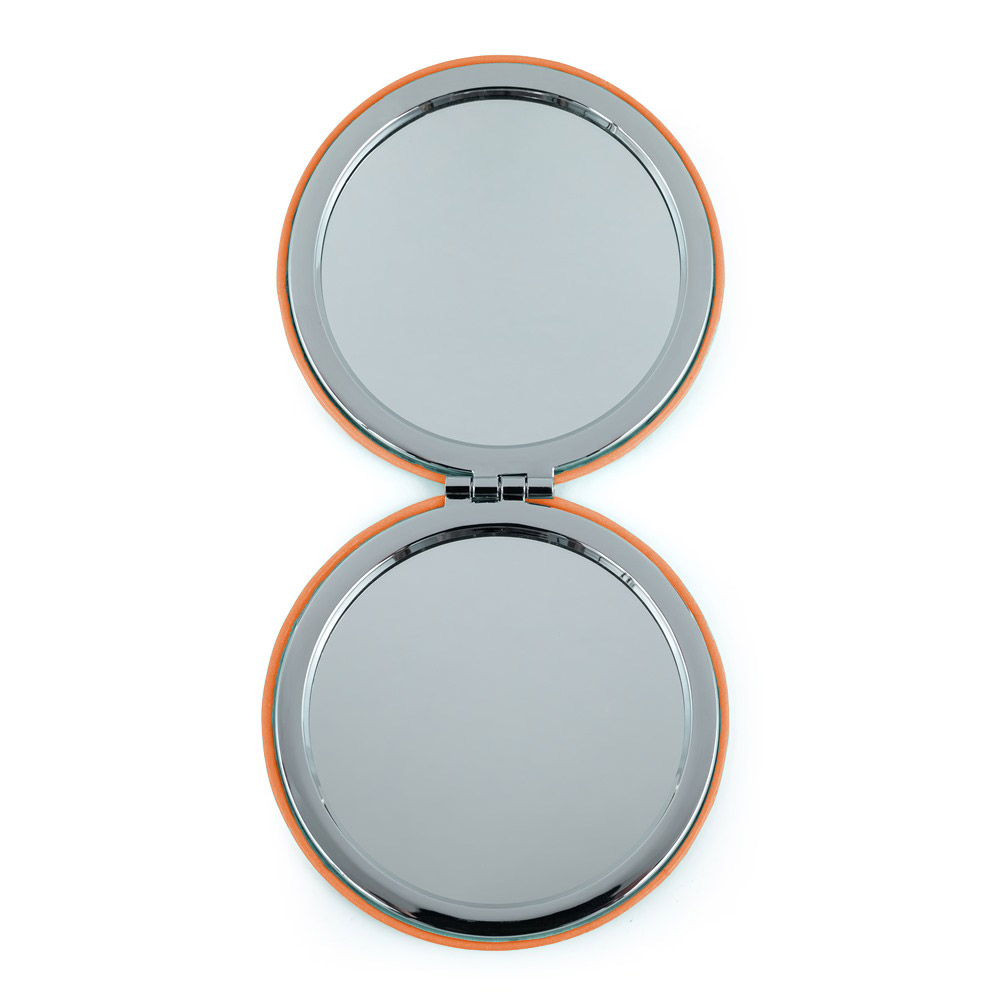 Kapesní zrcátko v oranžovém provedení. Vhodná velikost do kabelky.